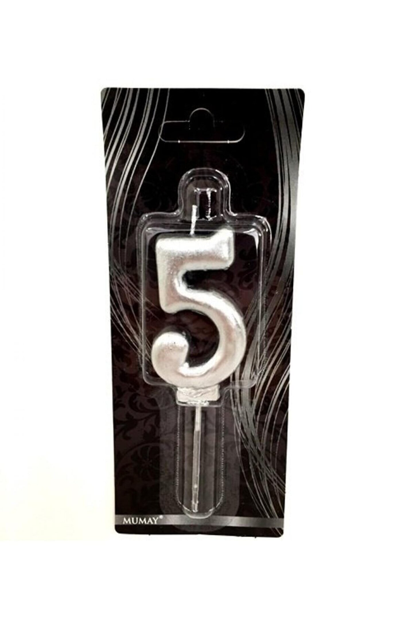 Gümüş 5 rakam mum Çubuk ile birlikte 7cmdir. Ürün içerisinde 1adet ürün gönderilmektedir.