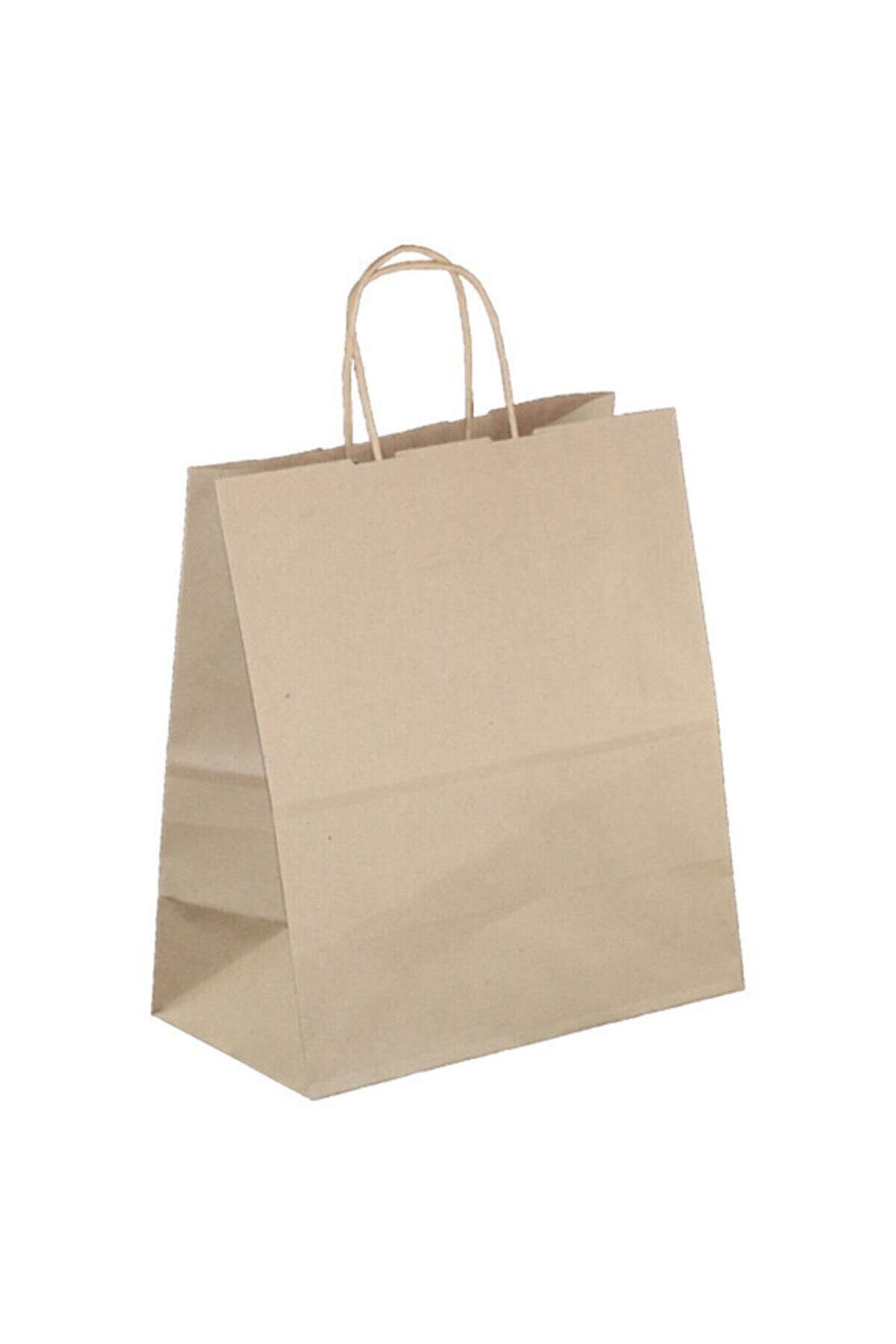 Burgu Saplı Kraft Kağıt Çanta 28x17x29 cm 100 Adet