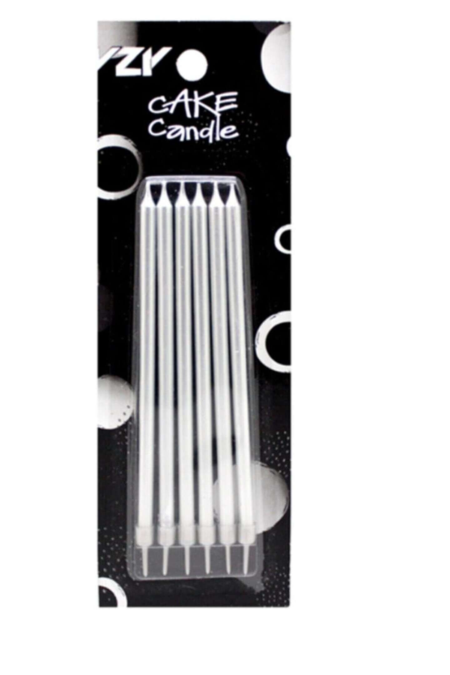 PAKET İÇERİĞİ:;20 CM GÜMÜŞ MUM 6 ADET , ALTLIKLARIYLA BERABER.;