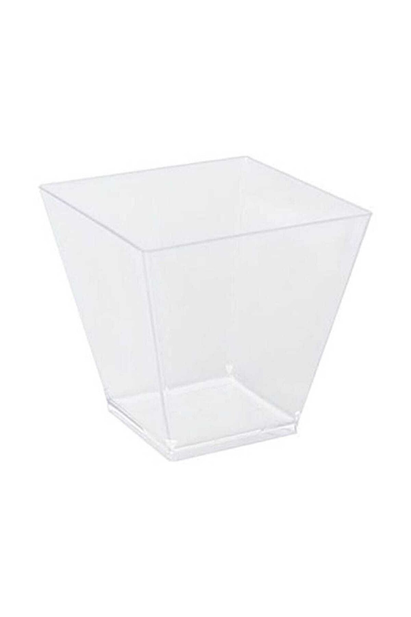 Mini porsiyonluk, 120 cc kübik formda plastik şeffaf kase. Porsiyonluk tatlı, kokteyl amaçlı aperatif yiyeceklerin sunumunda farklı ve zarif bir alternatiftir.; Bir paket içerisinde 24 adet bulunmaktadır. Yükseklik : 6 cm x Çapı. 5,5 cm;