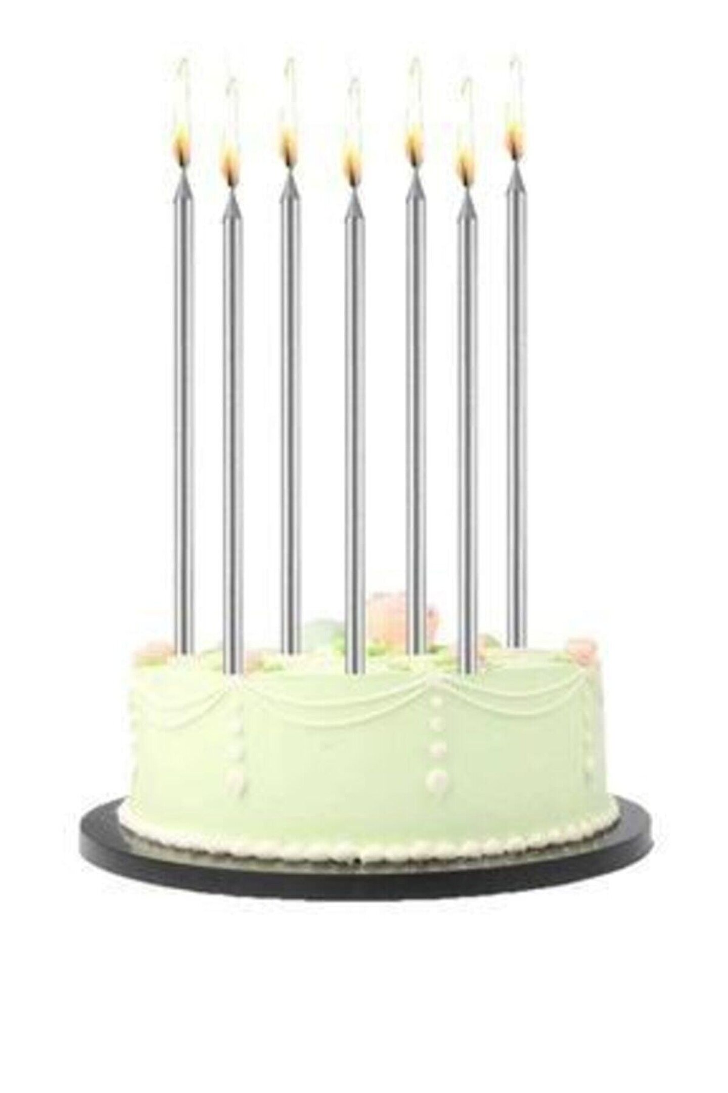 14Süs Mum Uzun Mum Gümüş Pasta Mumu 20 cm 6 Lı Gms Mum 6