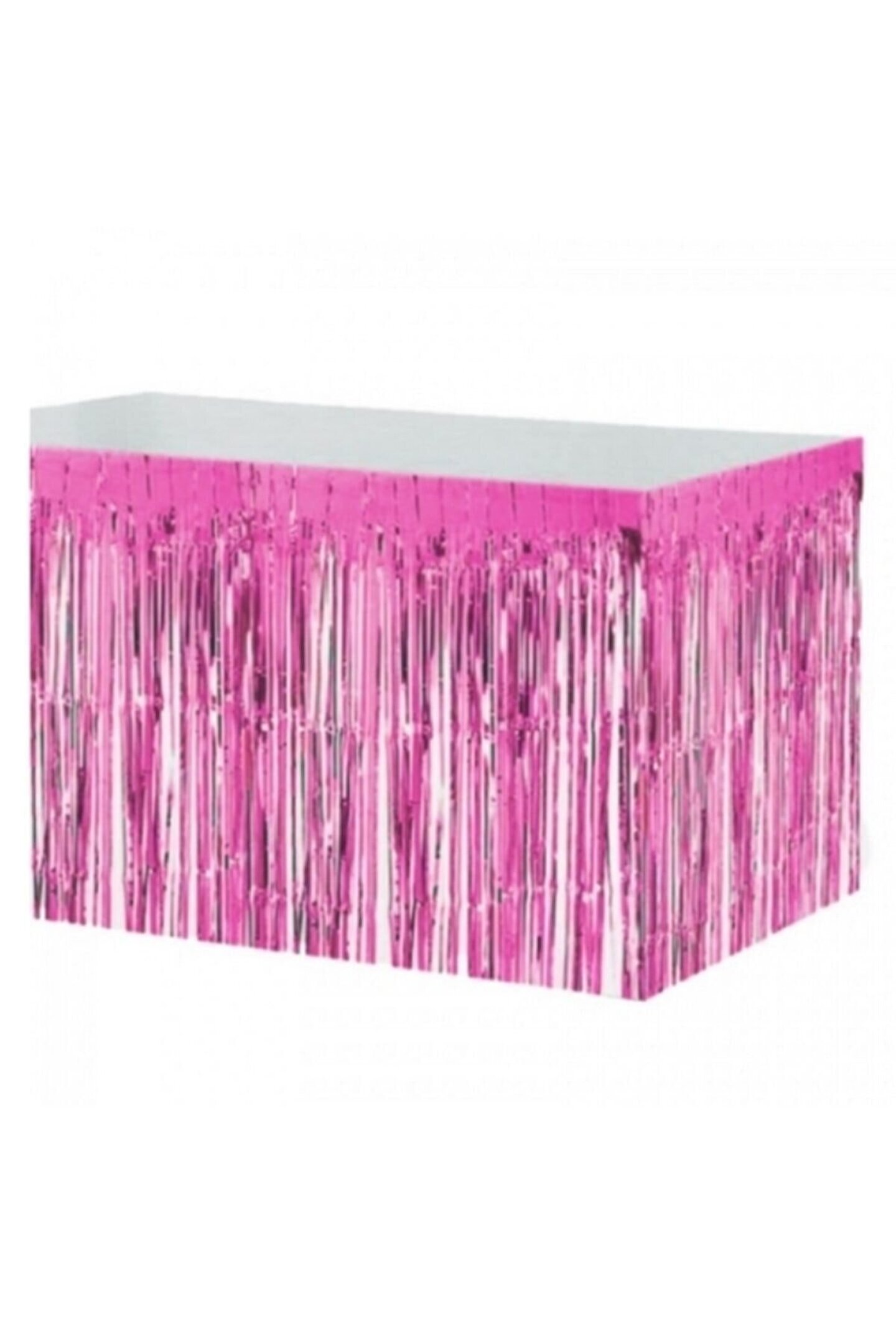 Pembe Metalik Folyo Püskül Masa Eteği 70x400cm
