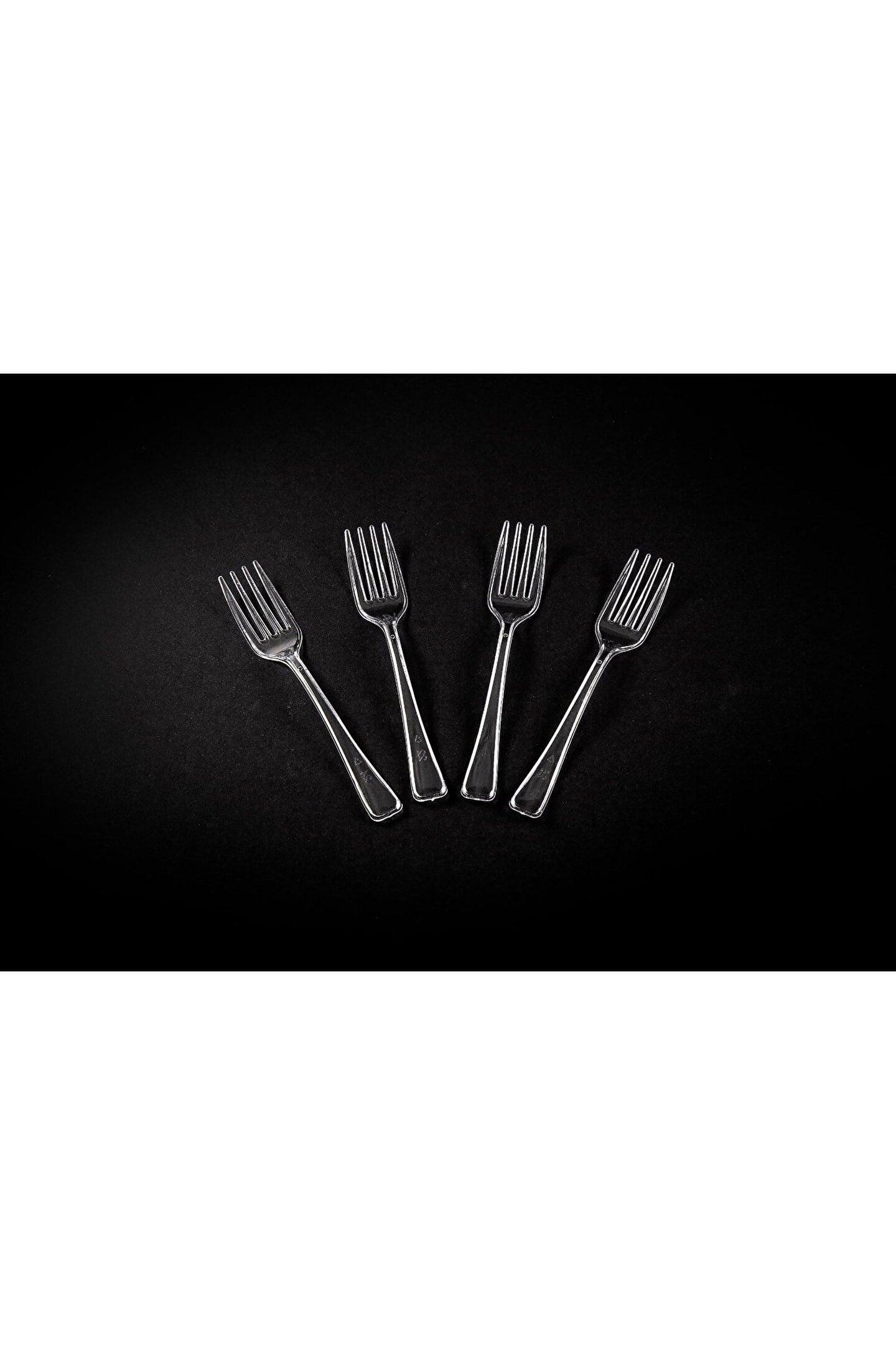 14Süs Plastik Çatal Lüks Şeffaf 100 Adet - Sert Kaliteli Mika