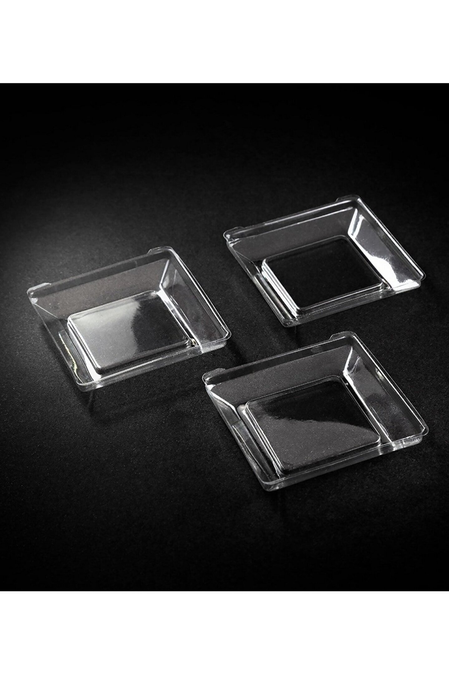 Plastik Kristal Mini Kare Tabak 6x6cm - 50 Adet (1 Paket)