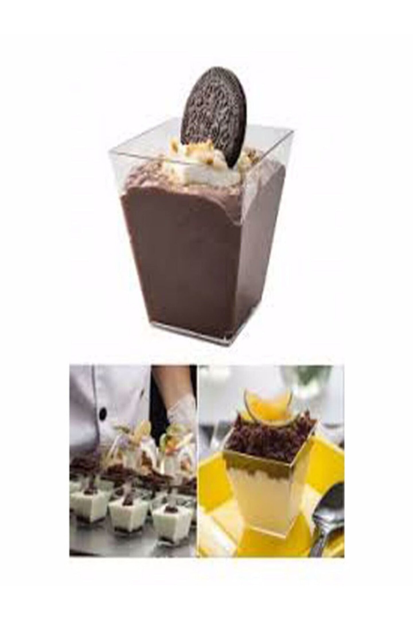 14Süs Prizma Mini Mika Plastik Sunum Kabı Kübik Kase 200cc - 25 Adet