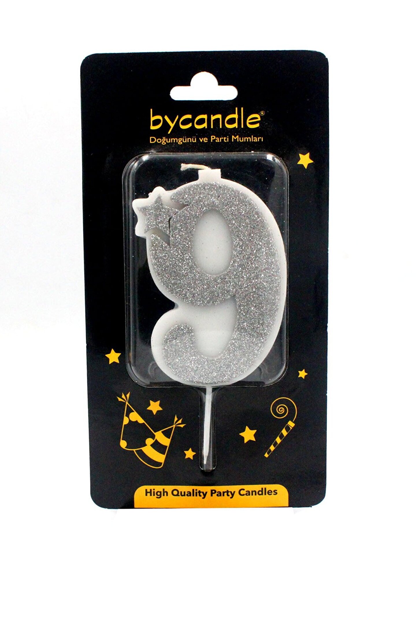 14Süs Simli Gri Rakam Mum-9
