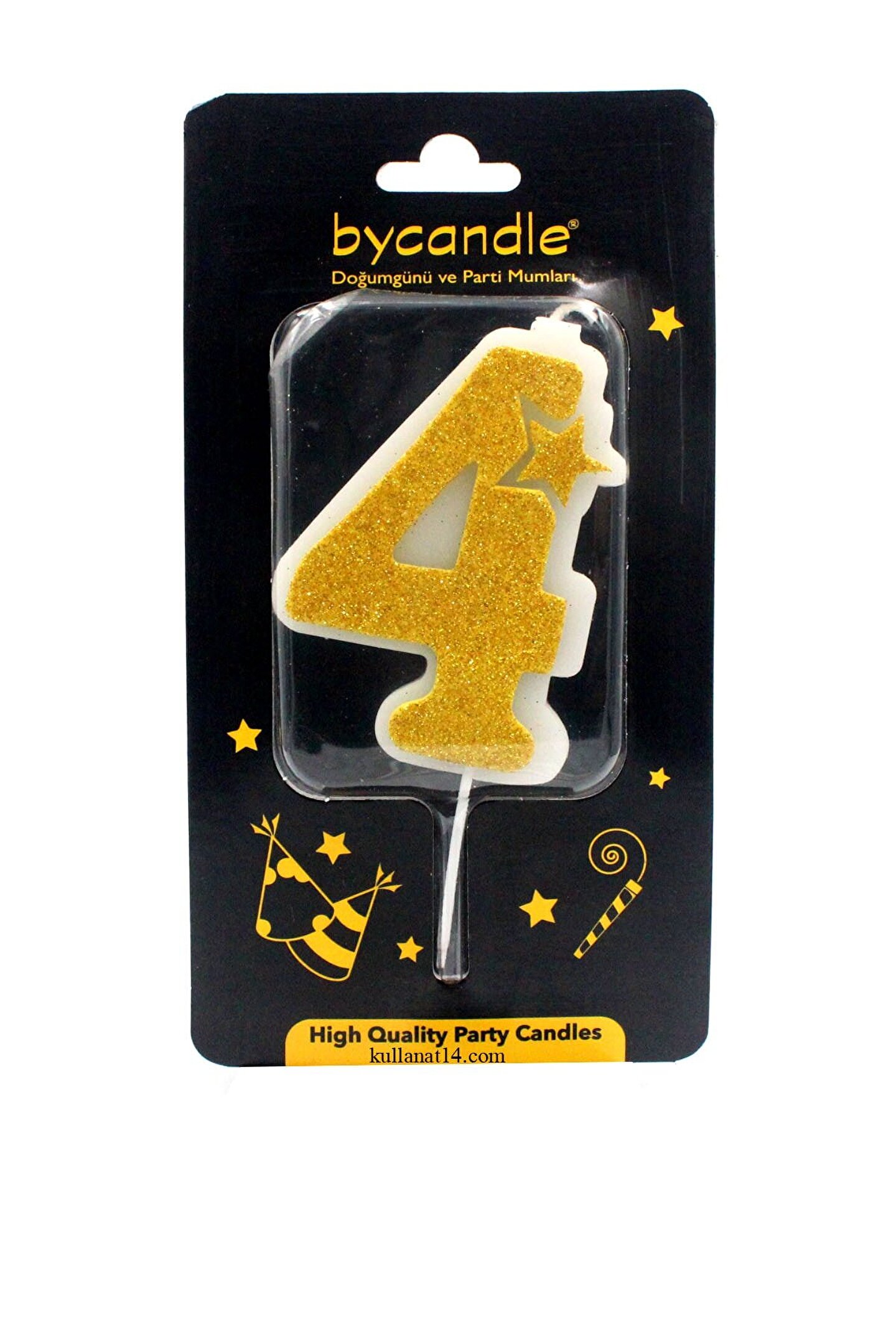 14Süs Simli Sarı Rakam Mum-4
