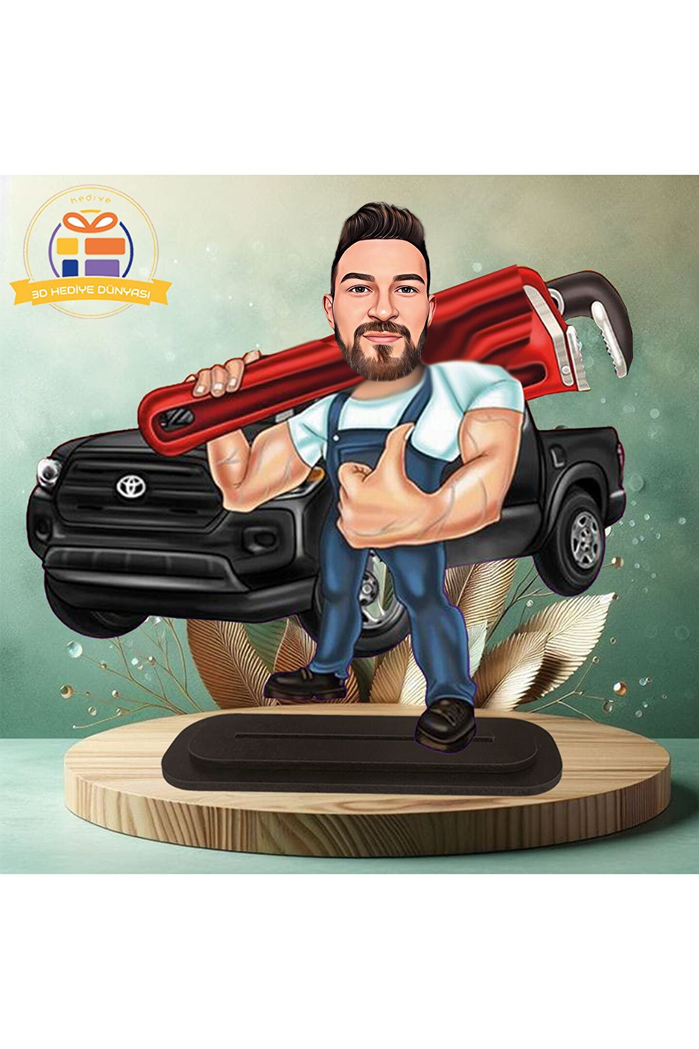 Mekanik ustası karikatür jeep tamircisi karikatürü biblo hediye 3d masa üstü biblo hediyesi