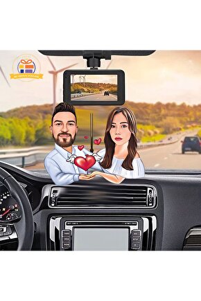 Melek kanatlı kalpli çift resmi karikatürü Araba Dikiz ayna süsü