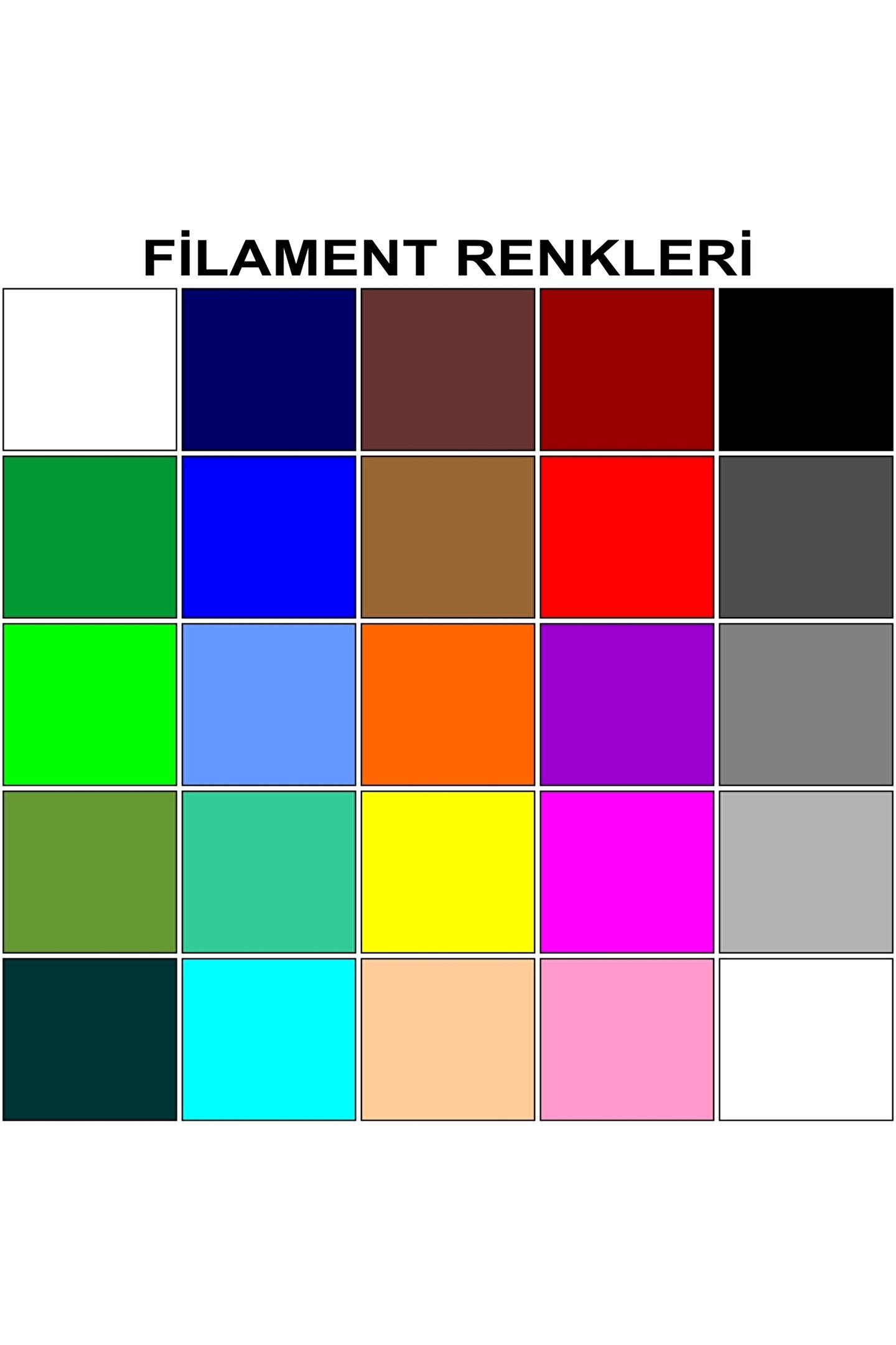 25 renk PLA filament, her renkten 10'ar metre TOPLAM 250 metre filament.