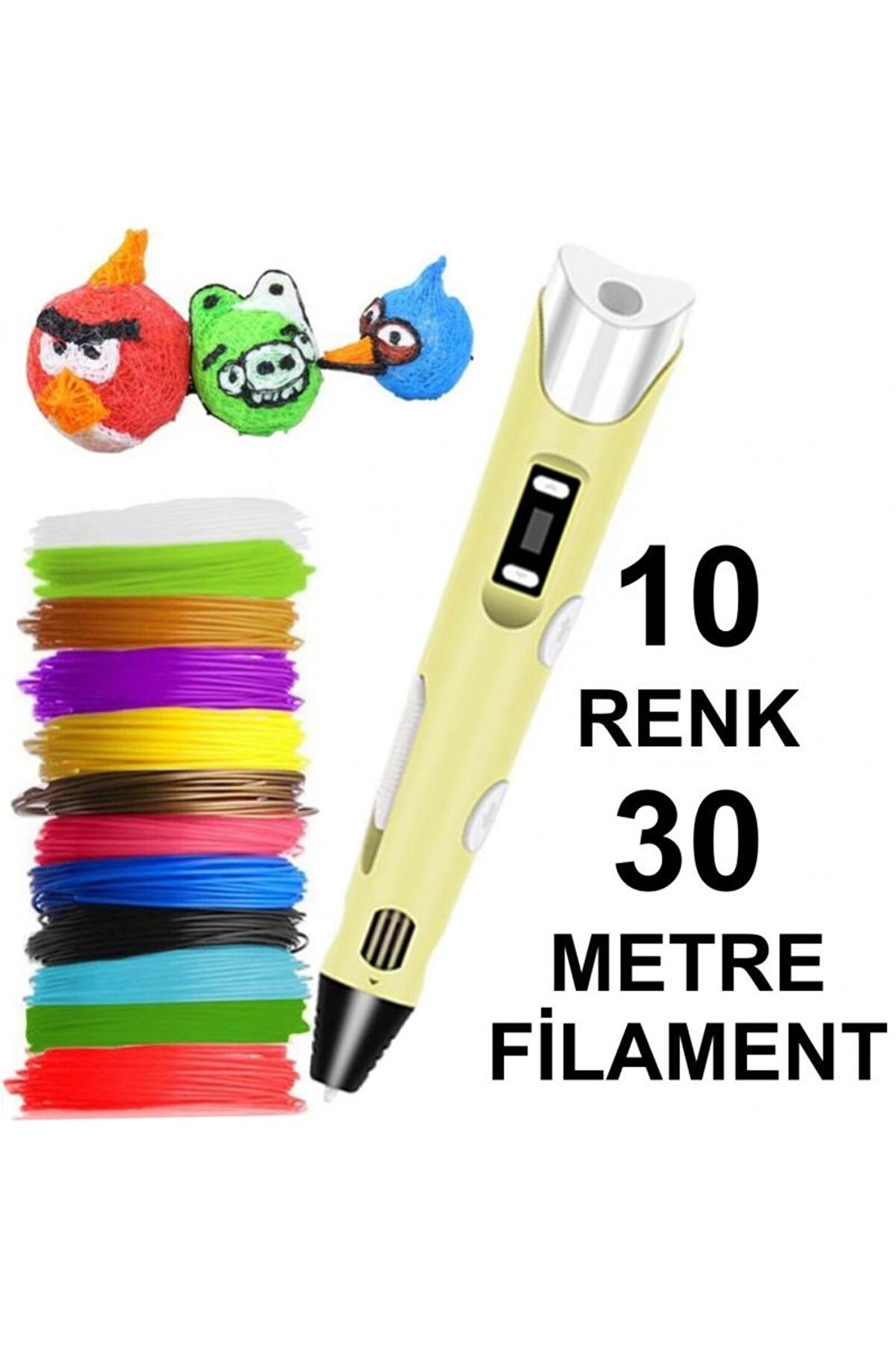 3D SARI Kalem Yazıcı+10 renk 30 metre (10x3metre) PLA Filament