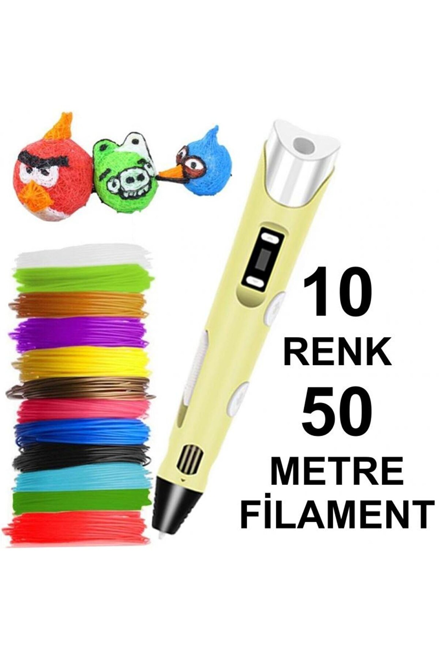 3D SARI Kalem Yazıcı+10 renk 50 metre (10x5metre) PLA Filament