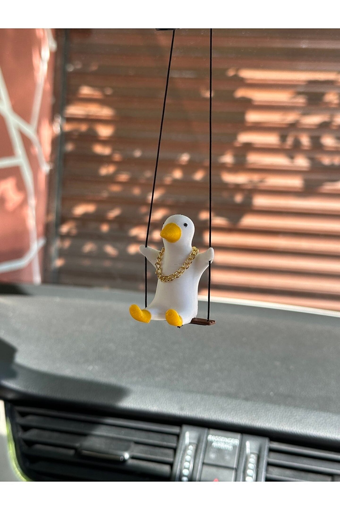 - Evrensel uyumlu tasarımı ile her türlü araç modeline kolayca monte edilebilen sallanan ördek ayna süsü, aracınıza şık bir görünüm kazandırır.; - Altın rengi zincir detayları ve beyaz sarı renk kombinasyonu ile dikkat çekici bir estetik sunar.; - Yeni trend dikiz ayna süsü, aracınızın arka kısmına modern ve zarif bir dokunuş ekler.; - Sallanma özelliği sayesinde hareket halindeyken bile dikkat çekici bir etki yaratır.