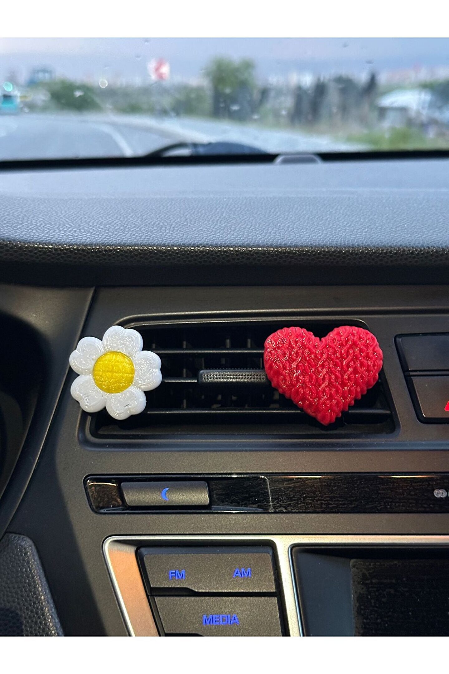 - iki adet renkli çiçek ve kalp papatya tasarımına sahip, arabanızın iç dekorasyonuna şıklık katan aksesuarlar.; - Torpido üzerinde estetik bir görünüm sunarak sürüş keyfinizi artırır.; - Kolay montaj imkanı sayesinde hızlı ve pratik bir şekilde arabanızın iç süslemelerini tamamlar.; - Menşei Türkiye'den gelen bu aksesuarlarla yerel üretim kalitesini yansıtır.; 1 adet çiçek ve 1 adet kalp gönderilmektedir