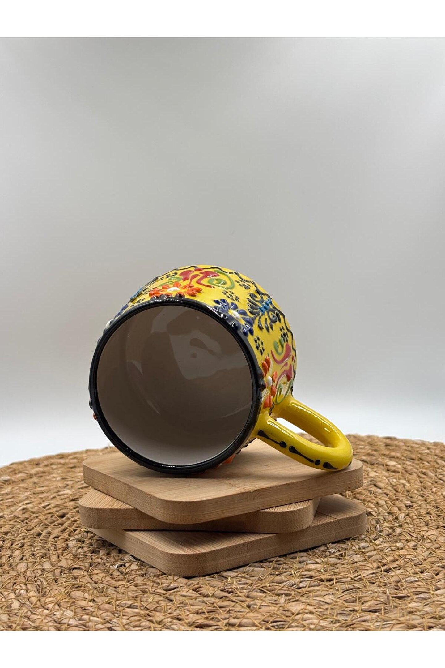 - El yapımı seramik malzemesiyle üretilmiş, benzersiz ve otantik bir tasarıma sahip.; - Kabartma desenleri ile zenginleştirilmiş yüzeyi, görsel olarak çekici bir görünüm sunar.; - 250 ml kapasitesi sayesinde içeceklerinizi keyifle tüketebilirsiniz.; - Menşei Türkiye'den gelen bu kupa, yerel el sanatlarının özgün bir temsilcisidir.