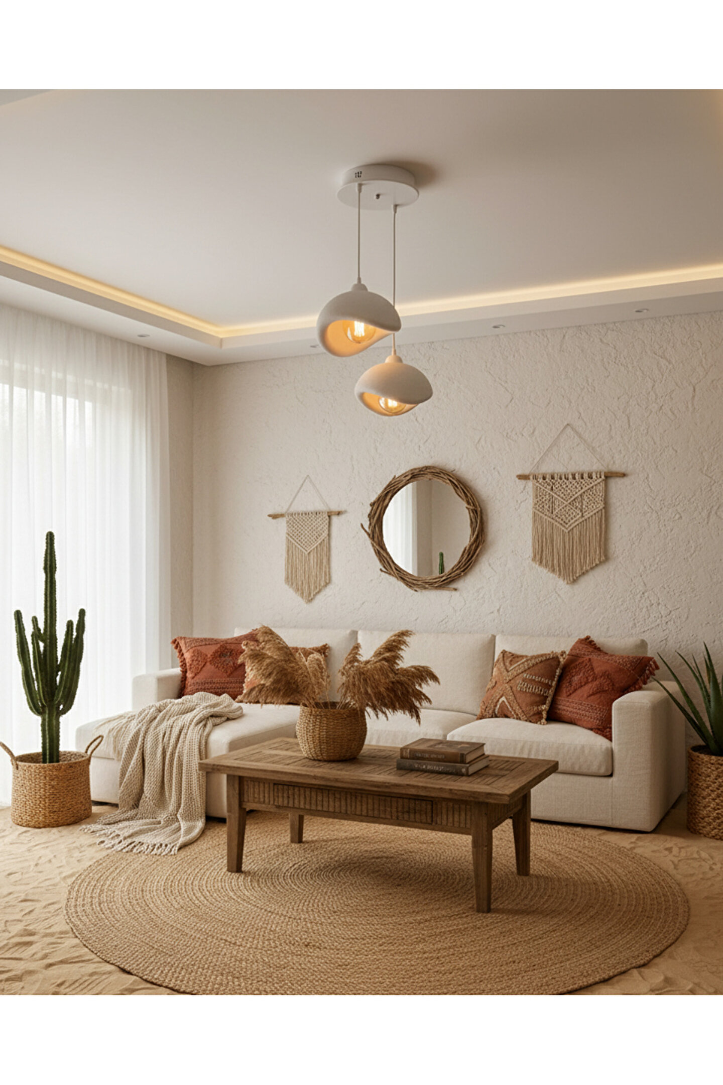 - Modern ve bohem tarzı bir dokunuşla, salon ve oturma odanızın atmosferini zenginleştiren 2'li sarkıt avize.; - Oval tasarımı ile mekanınıza estetik bir görünüm kazandırırken, beton görünümüyle doğal bir şıklık sunar.; - A+++ enerji sınıfı sayesinde enerji tasarrufu sağlar ve elektrik faturalarınızda önemli ölçüde tasarruf etmenize yardımcı olur.; - E27 duy tipi ile uyumlu ampuller kullanarak kolayca kurulum yapabilir ve istediğiniz aydınlatma çözümüne kavuşabilirsiniz.; - 101 - 120 cm arasında ayarlanabilir yükseklik sayesinde mekanınıza en uygun aydınlatma seviyesini elde edebilirsiniz.; - Rustik model, avizenin her köşesinde geleneksel ve modern çizgileri bir arada sunarak mekanınıza özgün bir hava katar.; - Plastik materyal kullanımı, dayanıklılığı artırırken hafifliği sayesinde montaj işlemini kolaylaştırır.;