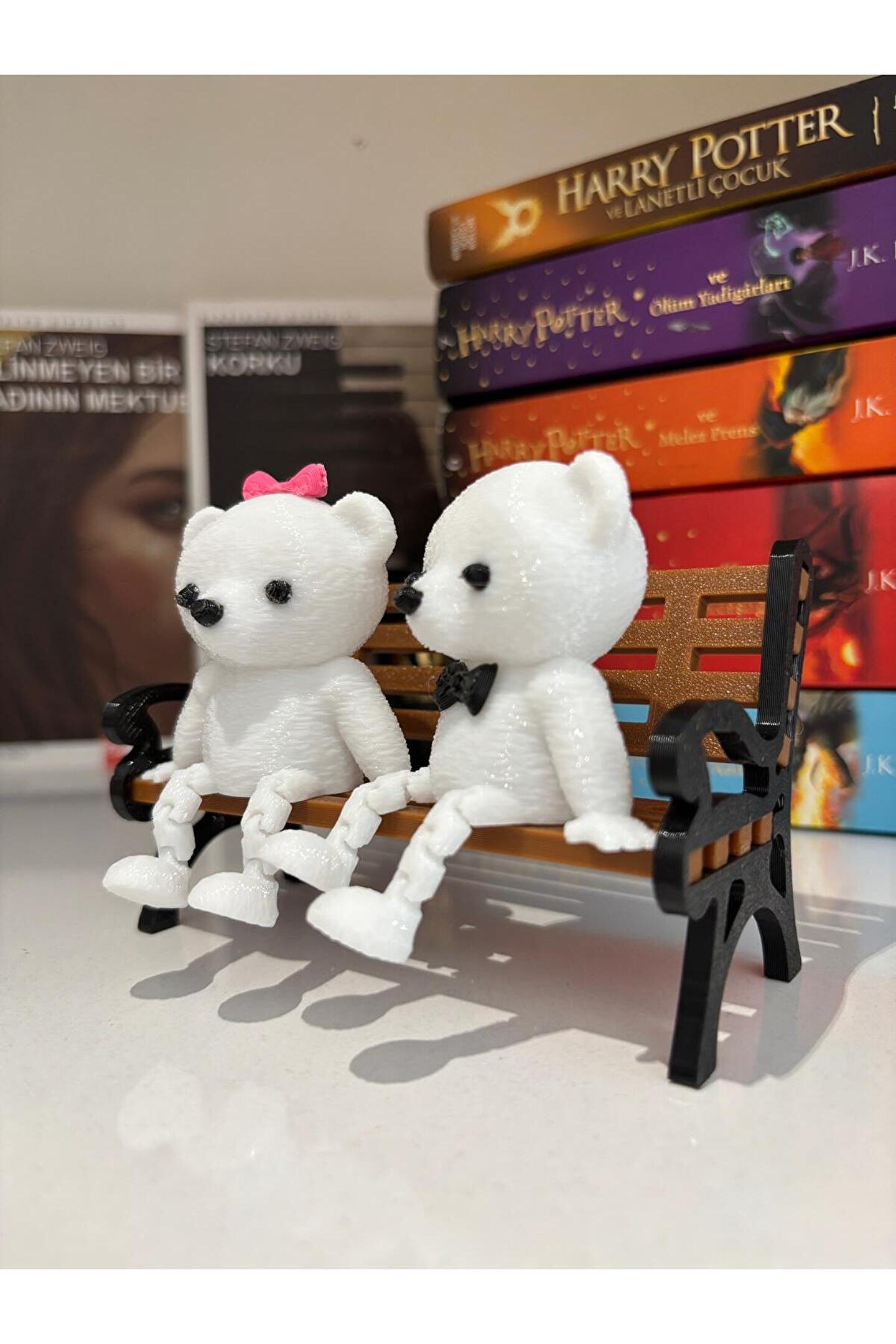 - Modern tasarımıyla dikkat çeken bu dekoratif biblo, bankta oturan ikili sevimli ayıcık figürleriyle evinizin veya ofisinizin atmosferini zenginleştirir.; - Üç parçadan oluşan set, hem şıklığı hem de fonksiyonelliği bir arada sunarak mekanınıza sıcaklık katar.; - Dayanıklı plastik materyali sayesinde uzun ömürlü kullanım vaat ederken, kolay temizlenebilir yapısı ile pratiklik sağlar.; - Hem dekoratif hem de kişisel hediye olarak tercih edilebilir.
