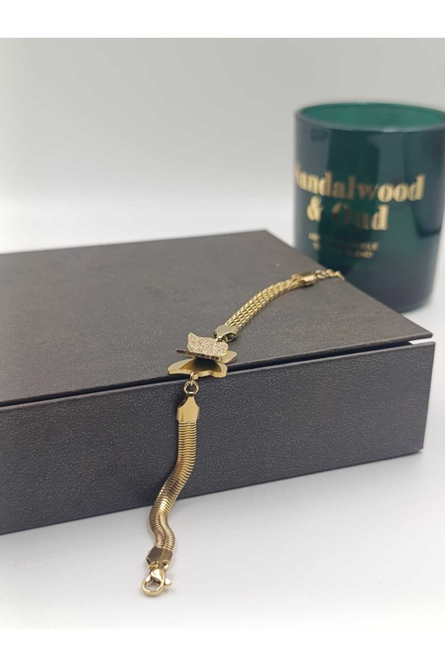 - Zarif tasarımıyla dikkat çeken bu çelik kelebekli bileklik, şıklığınızı tamamlar.; - Kadınların beğenisine sunulan bu aksesuar, günlük kullanım için idealdir.; - Taşsız yapısı sayesinde sade ve modern bir görünüm sağlar.; - Türkiye'de üretilmiş olup yerel malzemelerin kalitesini yansıtır.; - Dayanıklı çelik materyali ile uzun süreli kullanım vaat eder.