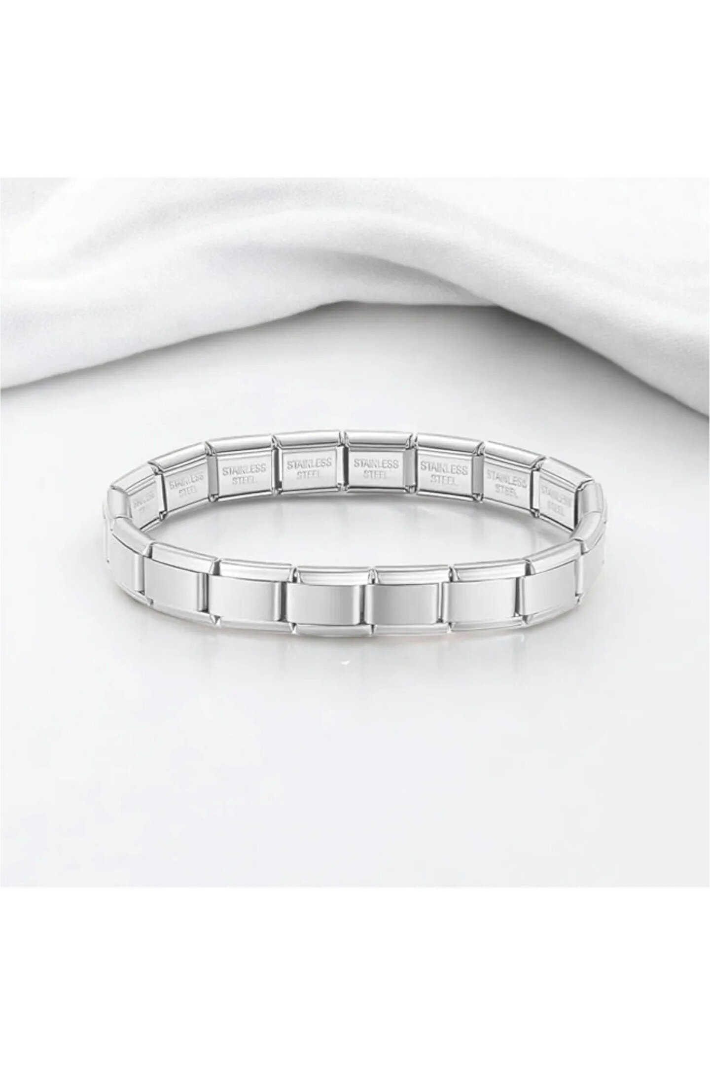 - Unisex tasarımı ile hem kadınların hem de erkeklerin kullanımına uygun, şık ve modern bir aksesuar.; - İtalyan Charm Çelik Bileklik, dayanıklı çelik materyali sayesinde uzun süreli kullanım sunar.; - Taşsız yapısıyla minimalist ve zarif bir görünüm sağlar; her türlü kıyafetle kolayca kombinlenebilir.; - Türkiye'de üretilmiş olup yerel işçilik ve kalite standartlarına sahiptir.; - Çelik malzemesi sayesinde paslanmaya karşı dirençlidir ve günlük kullanımda rahatlıkla tercih edilebilir.