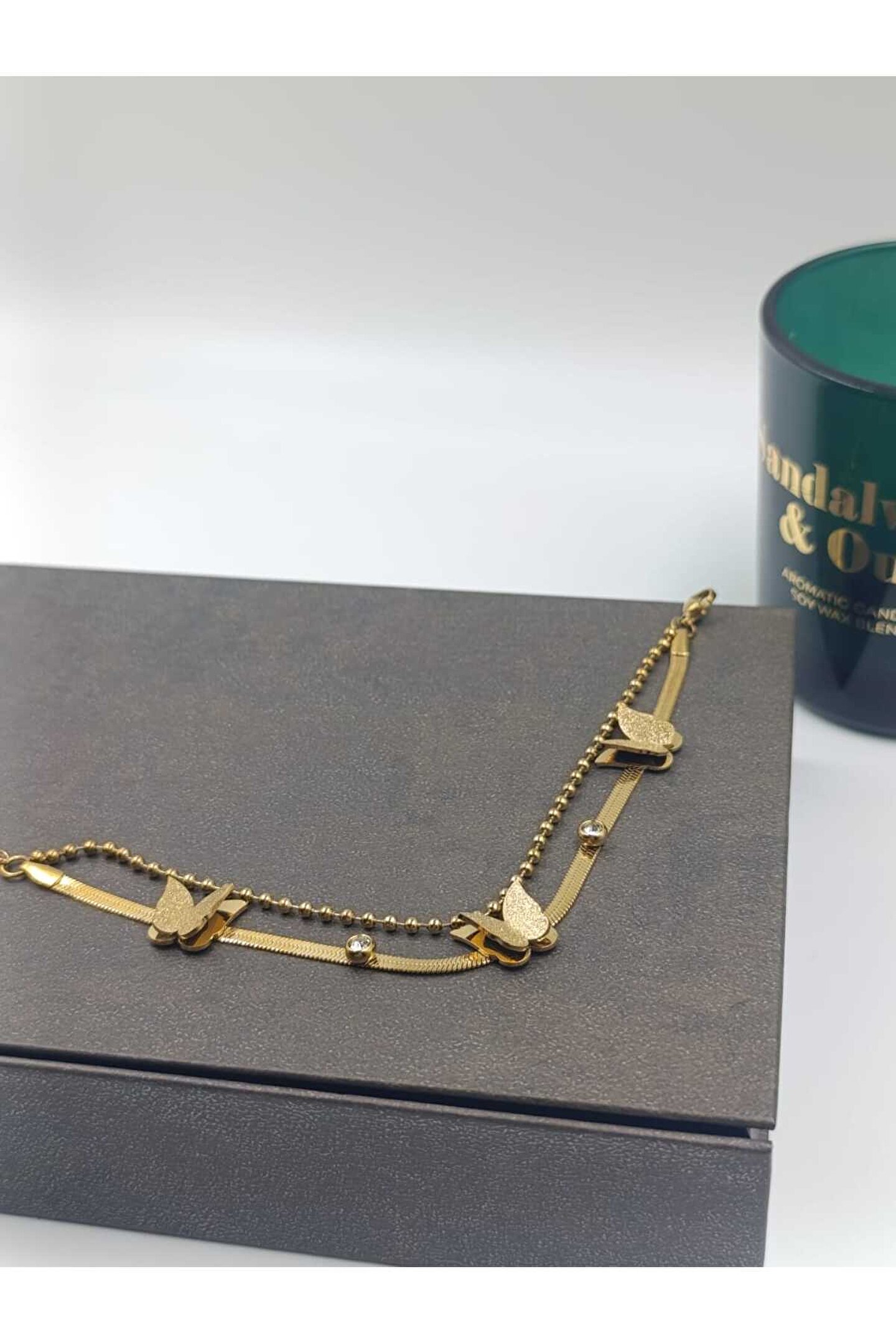 - Zarif kelebek detaylarıyla süslenmiş, şıklığı ve feminenliği bileğinizde taşıyın.; - Dayanıklı çelik materyali sayesinde uzun süreli kullanım sunar ve kararmaya karşı dirençlidir.; - Kadın ve kız kullanıcılar için ideal bir aksesuar seçeneği olarak tasarlanmıştır; her türlü kıyafetle uyum sağlar.; - Minimalist ve modern görünümüyle kolayca kombinlenebilir.; - Türkiye'de üretilmiş olup yerel üretim avantajını yansıtırken kalite standartlarına uygunluğu garanti eder.