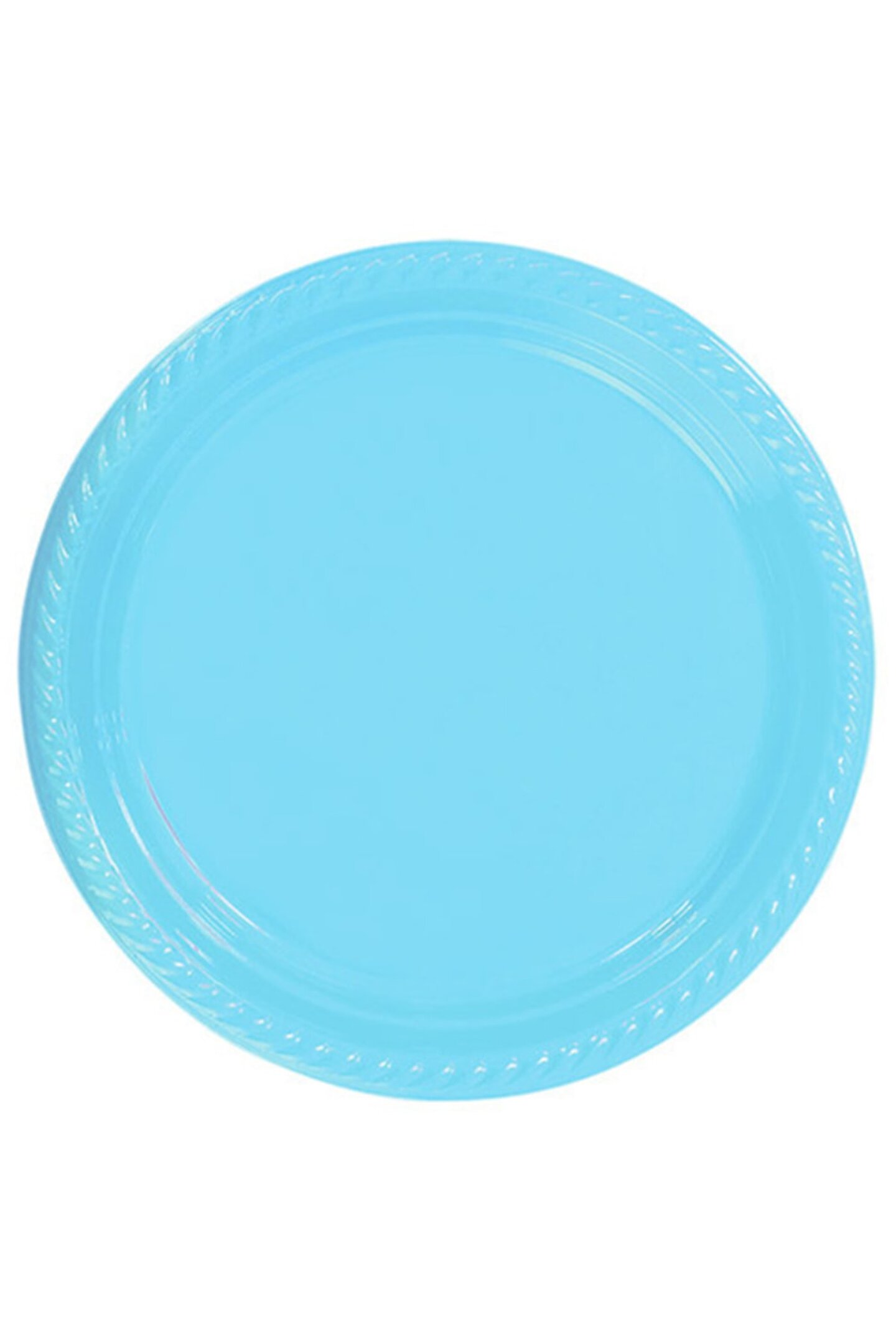 Açık mavi plastik tabak 25 li Pakette; 25 adet gönderilmektedir. Dayanıklı plastik malzemeden üretilmiştir. Ürün ebatı: 22 cm Ürünün orjinal fotoğrafıdır.