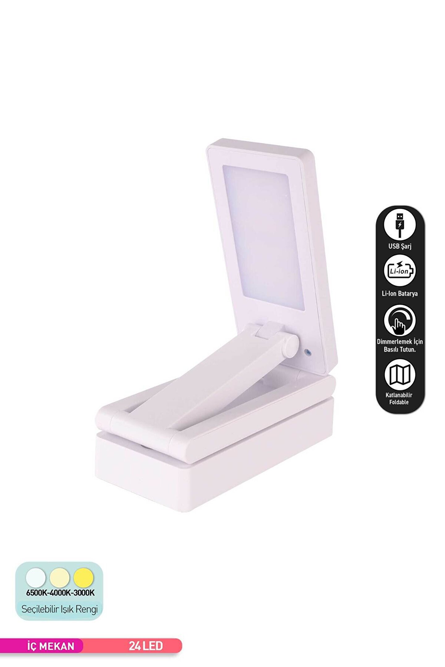 Kablosuz tasarımı sayesinde, herhangi bir priz arama derdine son veren şarj edilebilir yapısıyla her yere kolayca taşınabilir; Dayanıklı plastik materyali ile uzun ömürlü kullanım sunar ve kolay temizlenebilir özelliğiyle pratik bir bakım imkanı sağlar; Renk değiştirme özelliği ile farklı aydınlatma ihtiyaçlarınıza uyum sağlayarak kişisel konforunuzu artırır; E27 duy tipi sayesinde geniş uyumluluk sunar ve mevcut lamba soketlerine kolayca monte edilebilir;