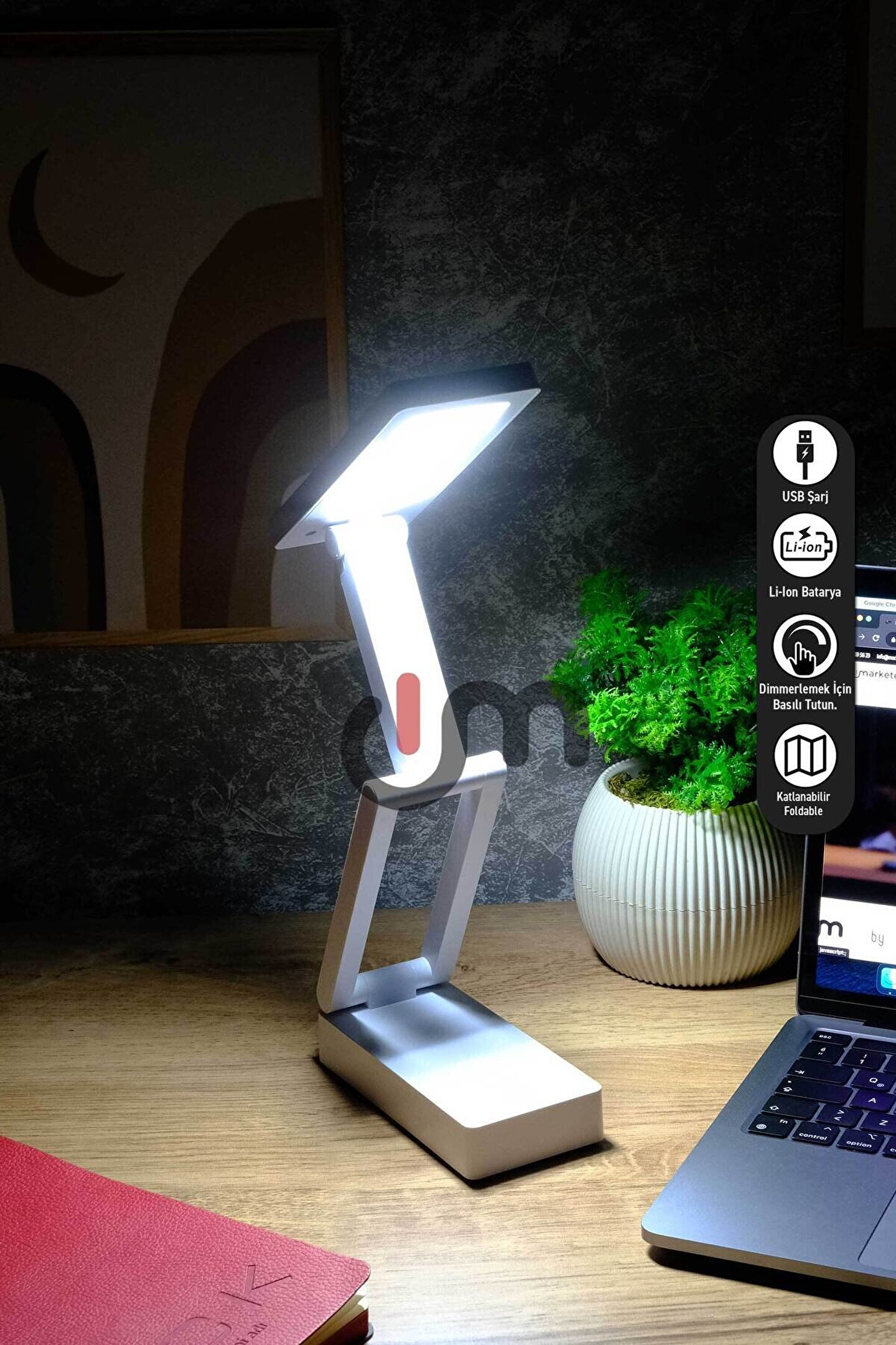 Şarjlı Katlanabilir LED Masa Lambası, Şiddeti Ayarlanabilir Dokunmatik Işık, Çalışma Okuma Işığı