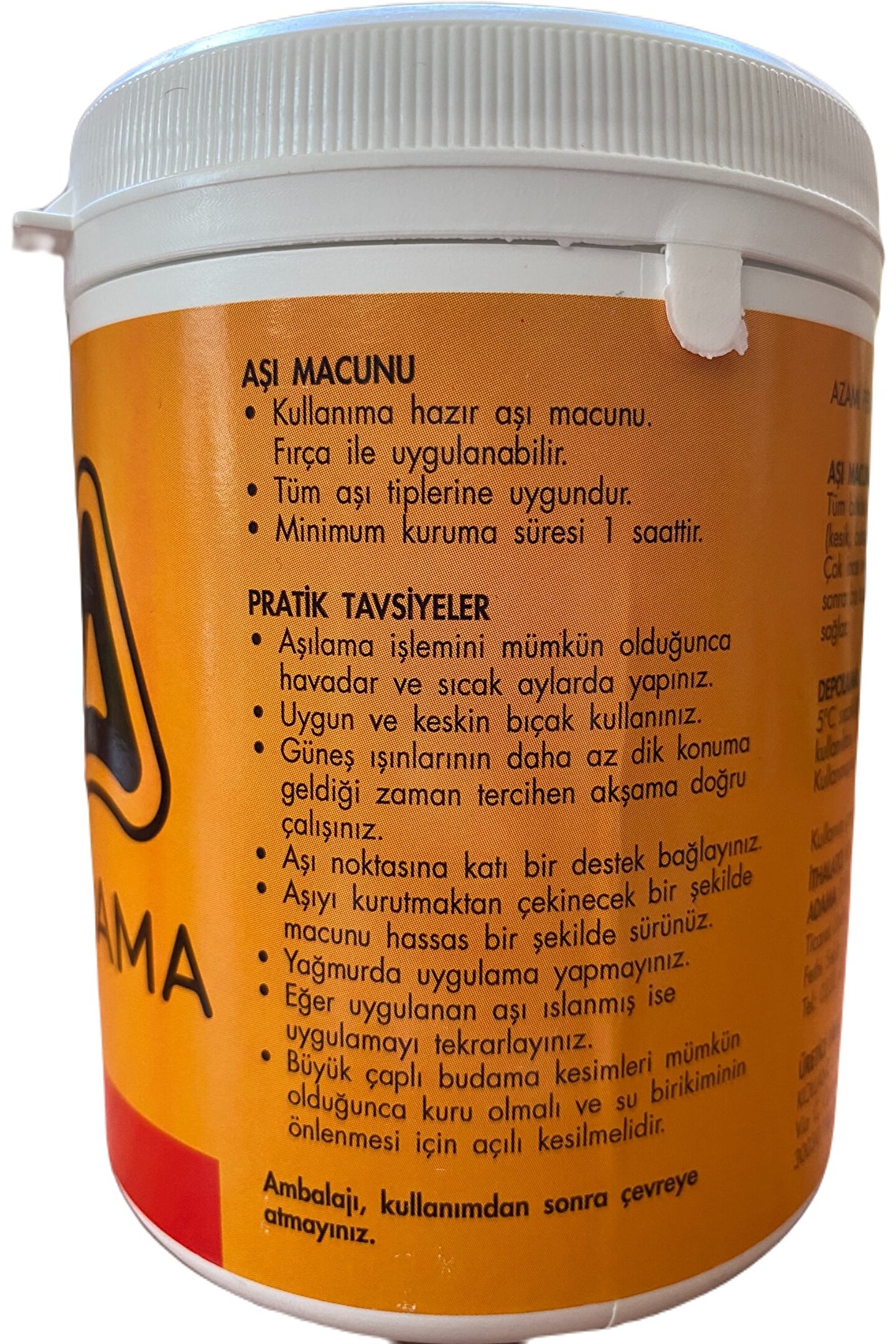 Arbokol Aşı Macunu Aşı- 250Gr ARBOKOL İTHAL AŞI MACUNU KULLANIMA HAZIR YÜKSEK KALİTEDE İTAL AŞI MACUNU. ; ANTİSEPTİK ÖZELLİKTE BİR MADDE OLUP,AŞI YAPILAN FİDANLARDA,KESİLEN YERLERE SÜRÜLÜR.*TEDAVİ EDİCİ ÖZELLİĞİ SAYESİNDE YARA YERLERİ ÇABUK KAPANIR.*HER NEVİ AĞAÇ,ASMA VE DİĞER AŞILARDA EMNİYETLE KULLANILIR.*FIRÇA İLE UYGULANABİLİR.*TÜM AŞI TİPLERİNE UYGUNDUR.*MİNUMUM KURUMA SÜRESİ 1 SAATTİR.PRATİK TAVSİYELER*AŞILAMA İŞLEMİNİ MÜMKÜN OLDUKÇA HAVADAR VE SICAK HAVALARDA YAPINIZ*UYGUN VE KESKİN BIÇAK KULLANINIZ.*GÜNEŞ IŞINLARININ DAHA AZ DİK KONUMA GELDİĞİ ZAMAN TERCİHEN AKŞAMA DOĞRU ÇALIŞINIZ.*AŞI NOKTASINA KATI BİR DESTEK BAĞLAYINIZ.*AŞIYI KURUTMAKTAN ÇEKİNECEK BİR ŞEKİLDE MACUNU HASSAS BİR ŞEKİLDE SÜRÜNÜZ.*YAĞMURDA UYGULAMA YAPMAYINIZ.*EĞER UYGULANAN AŞI ISLANMIŞ İSE UYGULAMAYI TEKRARLAYINIZ.*BÜYÜK ÇAPLI BUDAMA KESİMLERİ MÜMKÜN OLDUĞUNCA KURU OLMALI VE SU BİRİKİMİNİN ÖNLENMESİ İÇİN AÇILI KESİLMELİDİR. ; Ürün su bazlıdır. ; ürün sürme bıcağıyla beraber yollanır.;