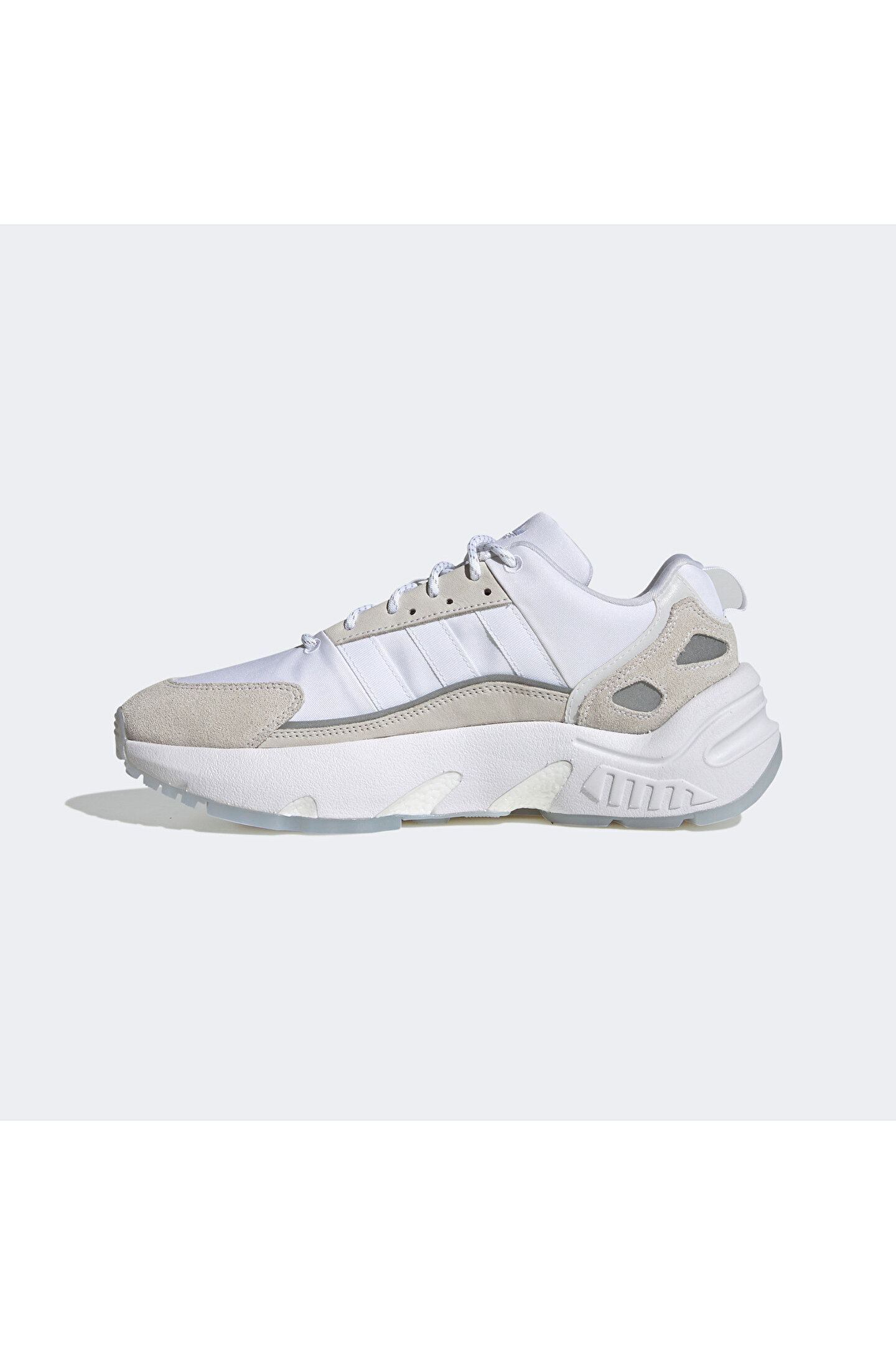 adidas ZX 22 BOOST ayakkabı ile kendinden emin adımlar at. Kolay giyilebilir yapısı ve fütürist görünümü ile günlük rutininde kullanabileceğin harika bir seçenek. Tek renkli tasarımı ile her kombine şık bir görünüm kazandırır. Bu ayakkabıyı en sevdiğin yerlerde giy ve JET BOOST parçalarının sunduğu şık adımların keyfini çıkar. Ayakkabının üst yüzeyi, en az %50 oranında geri dönüştürülmüş malzeme içerir. Bu ürün, plastik atıklara son vermeye yönelik çözümlerimizden sadece birini temsil ediyor. Teknik Özellikler Belirli oranda geri dönüştürülmüş malzemelerle üretilen, tek renkli, koşu stili ayakkabı; Bağcıklı tasarım; Dikişli süet katmanlara sahip file üst yüzey; Jet Boost parçalı EVA orta taban; Kumaş astar;
