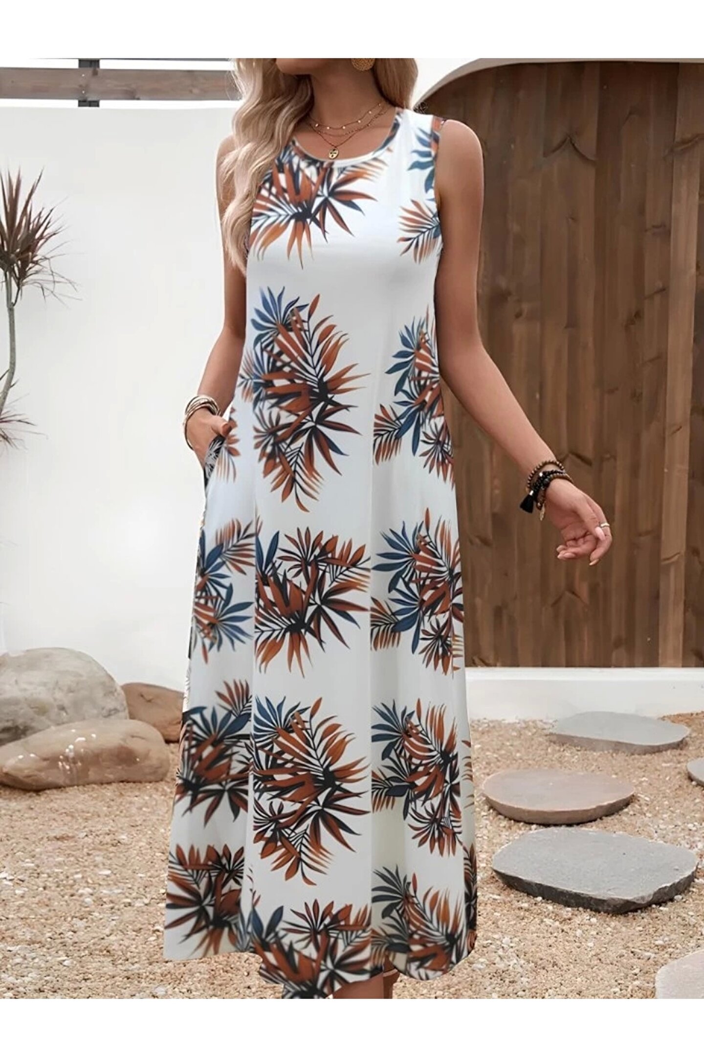 Kadın Askılı Yuvarlak Yaka Cepli Desenli Süprem Elbise