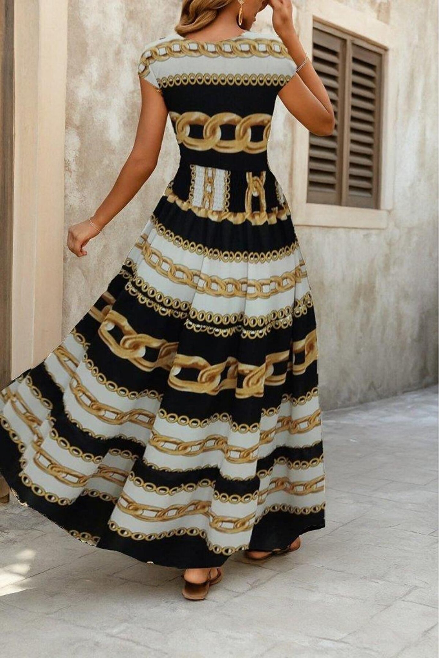 Adora Moda Kadın Kısa Kollu Kruvaze Yaka Beli Lastikli Süprem Maksi Boy Elbise