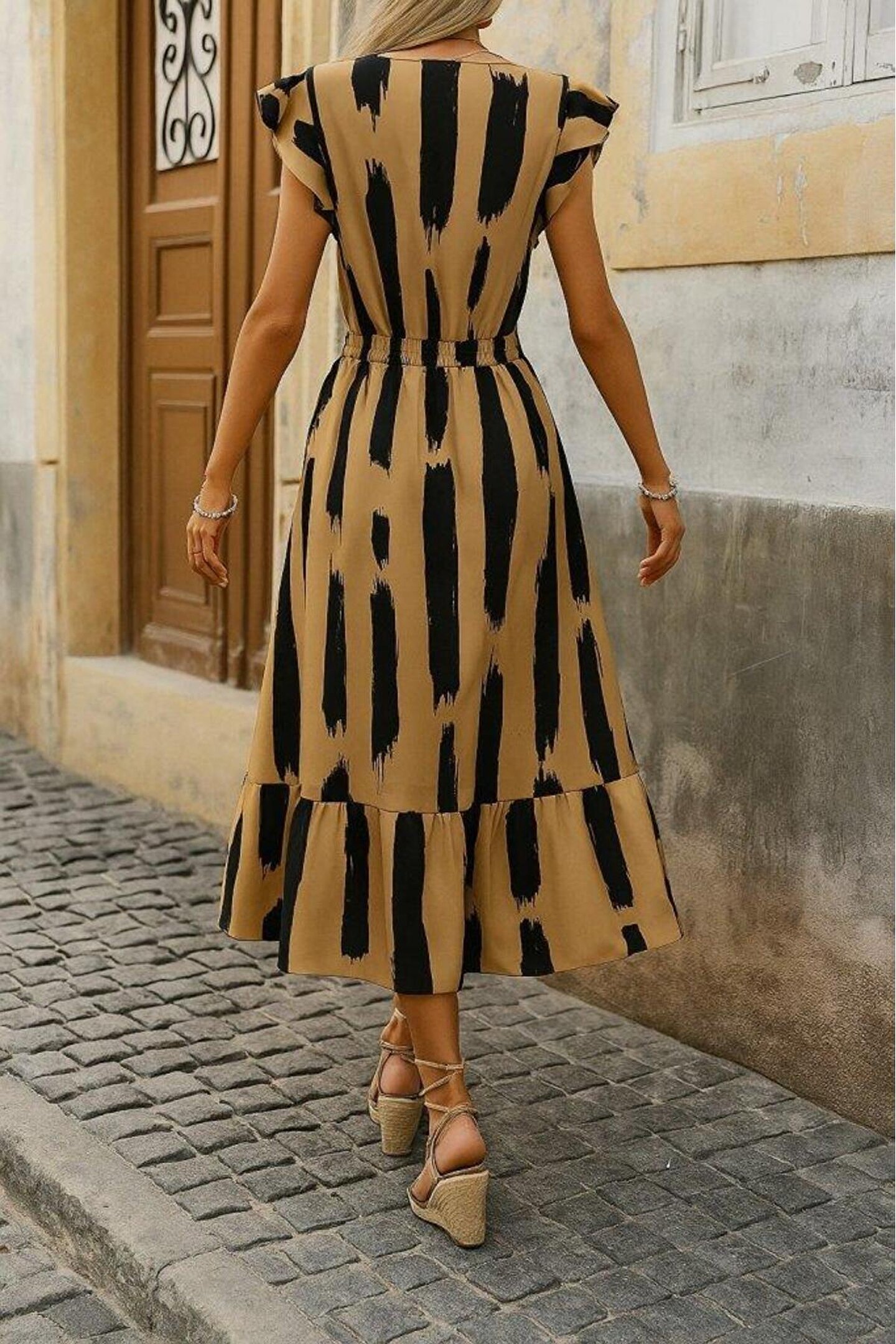 Adora Moda Kadın Kısa Kollu Kruvaze Yakalı Fırfırlı Süprem Elbise