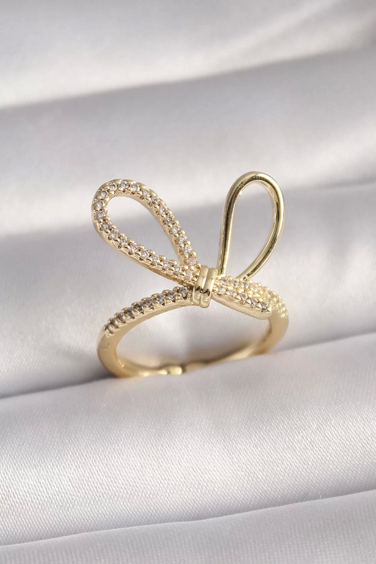 Gold Renk Zirkon Taşlı Düğüm Model Kadın Yüzük
