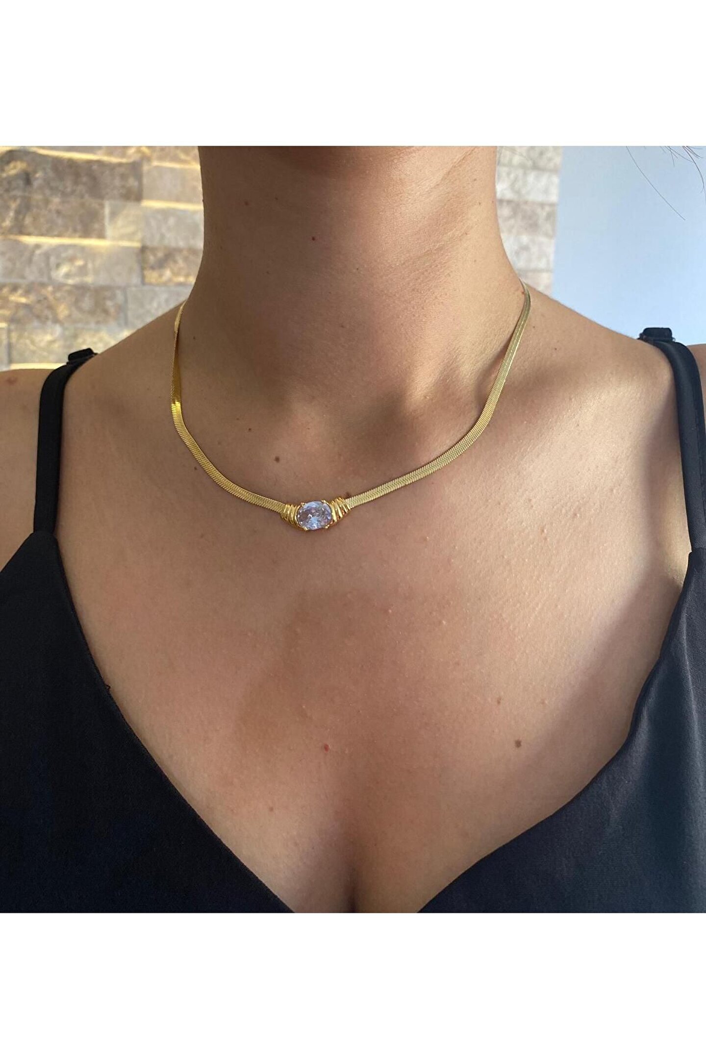 Kolye zinciri ve ucu çeliktir. Kararmaz. Ölçü: Zincir 45+5 cm, kolye ucu 15 mm.