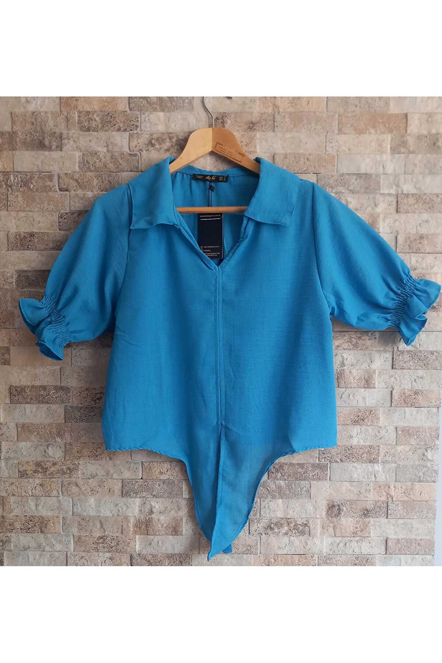 AEK Mavi Önden Bağlamalı Kısa Gömlek