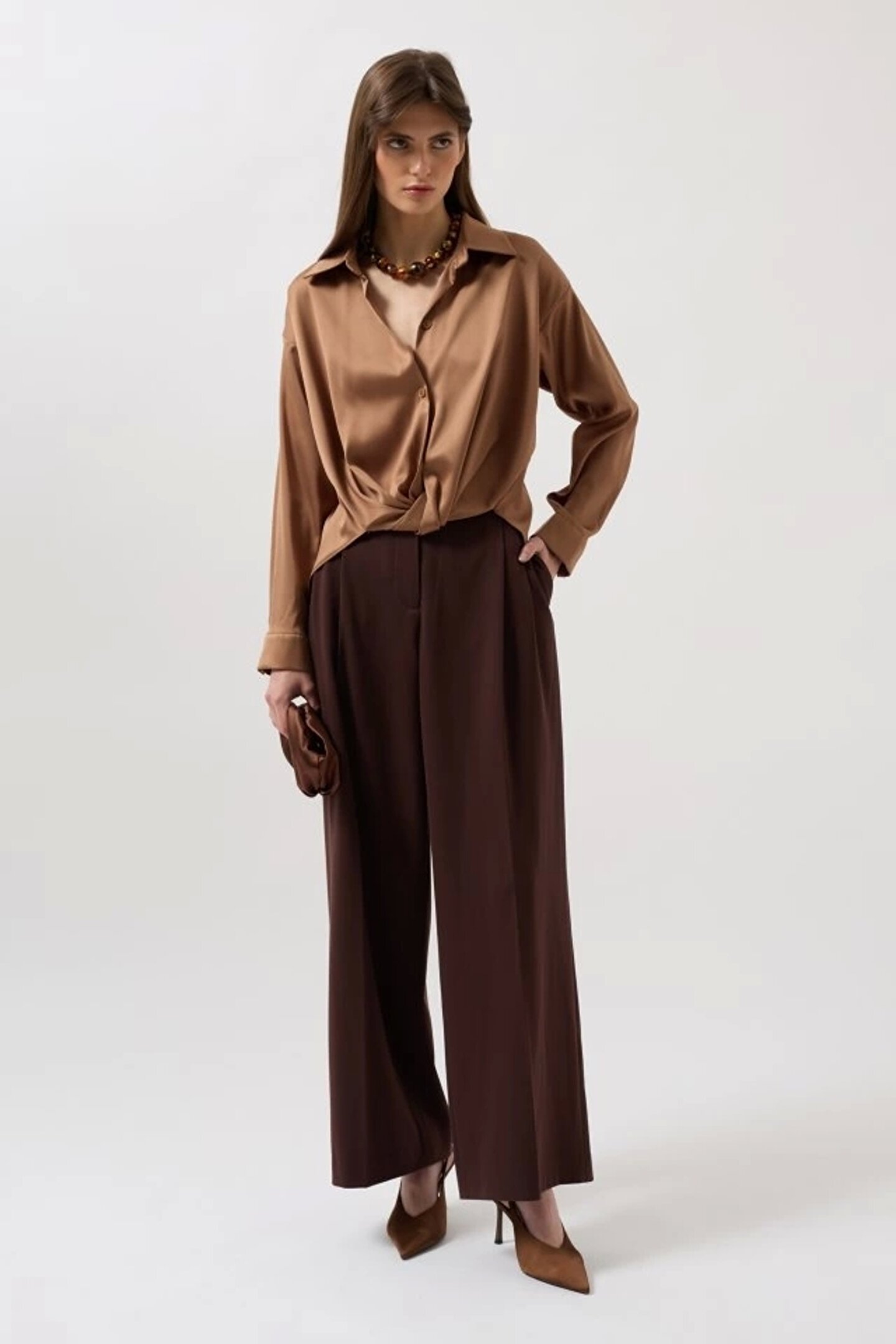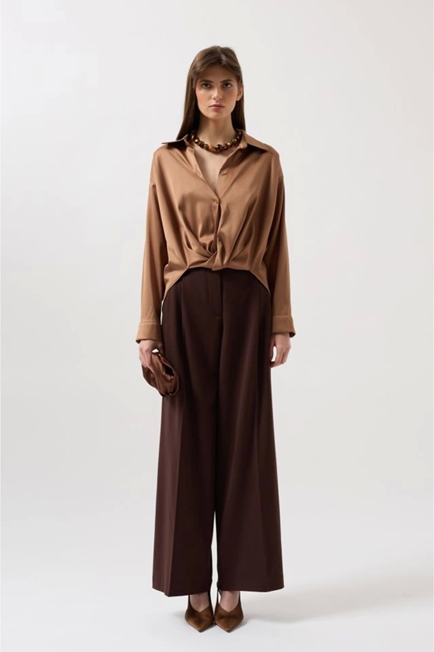 Aesco Bel Büzgülü Crop Saten Gömlek