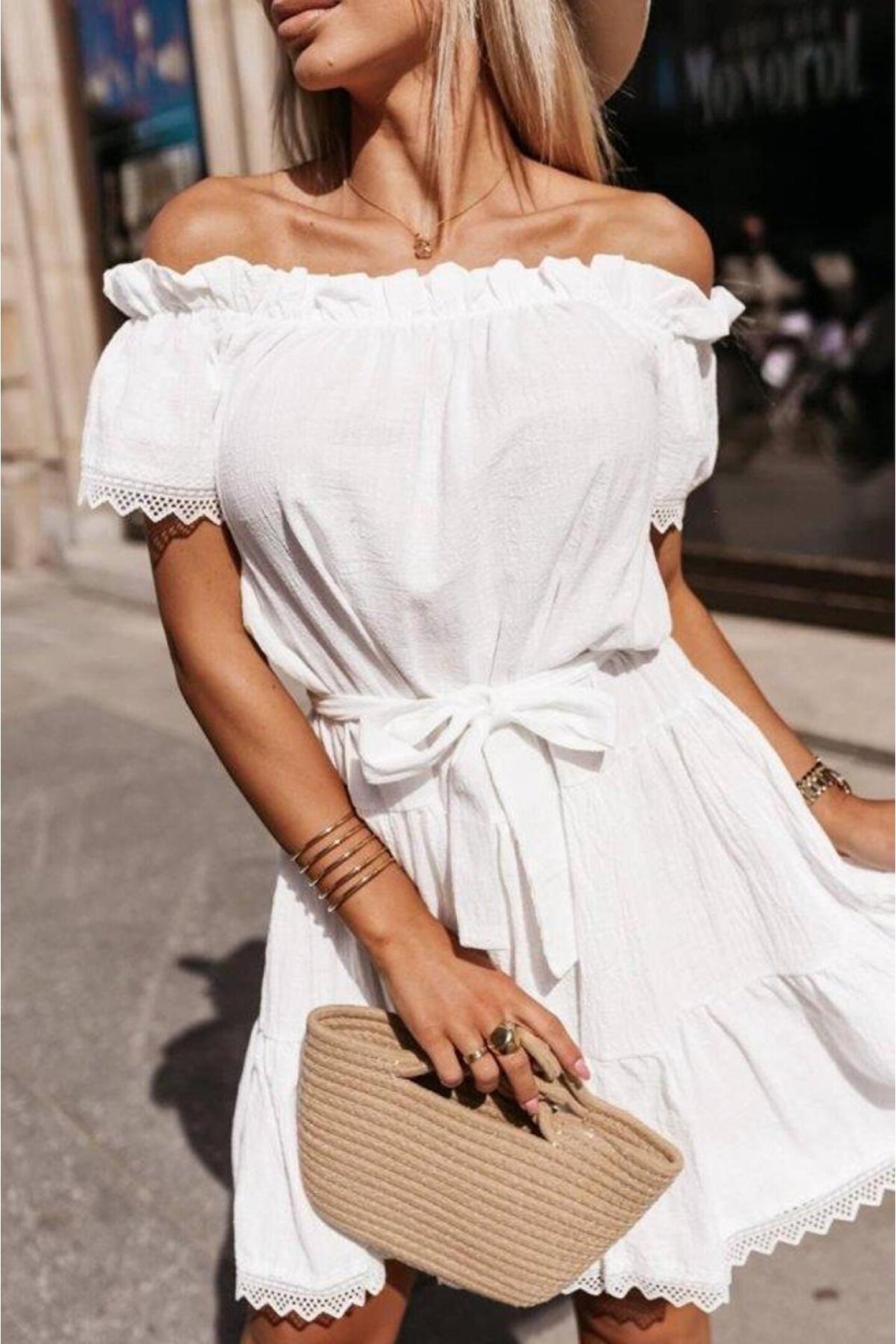 Kadın Madonna Yaka Pütür Detay Pamuklu Mini Elbise
