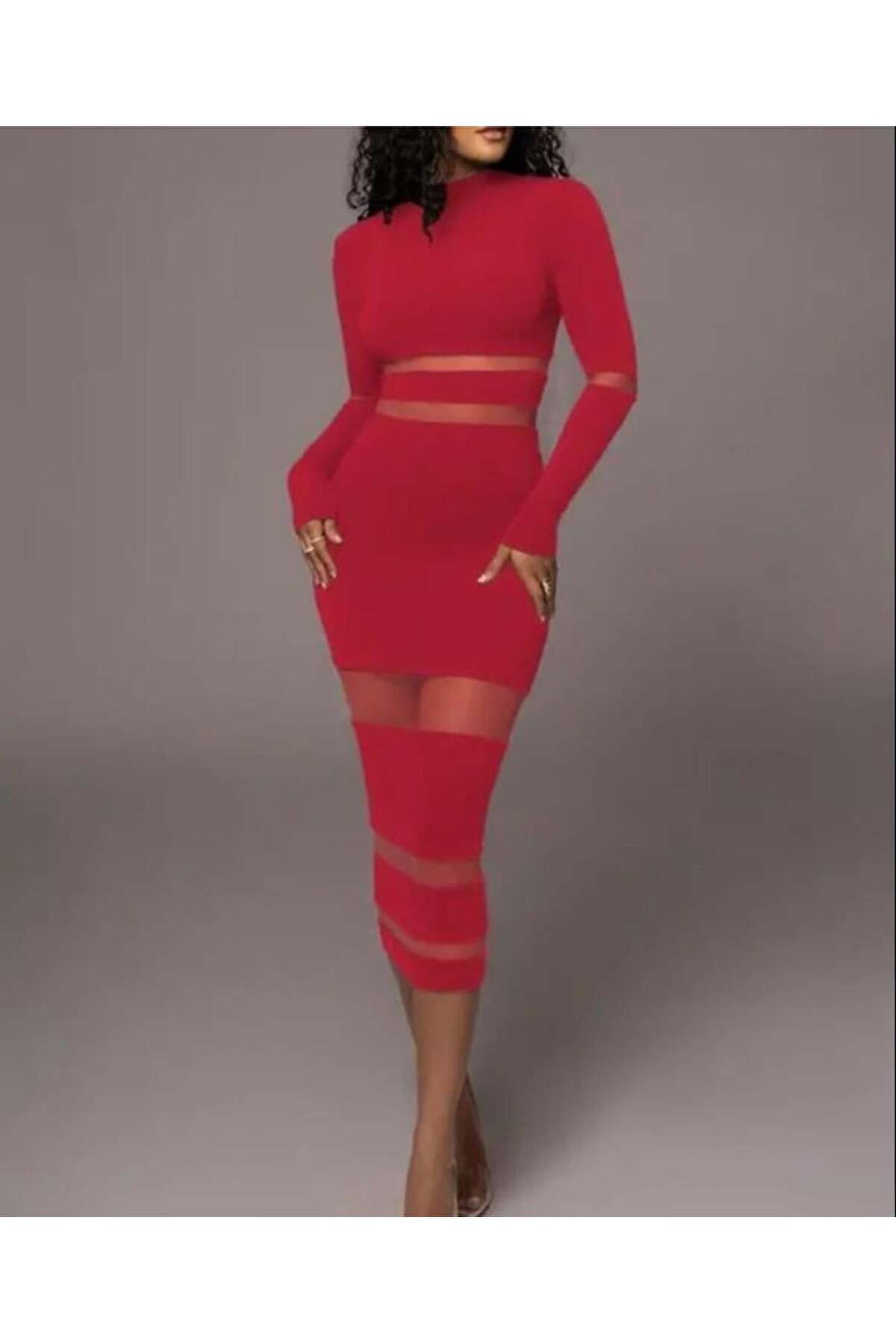 Kadın şerit Transparan Detay Fırsat ürün Midi Boy Elbise