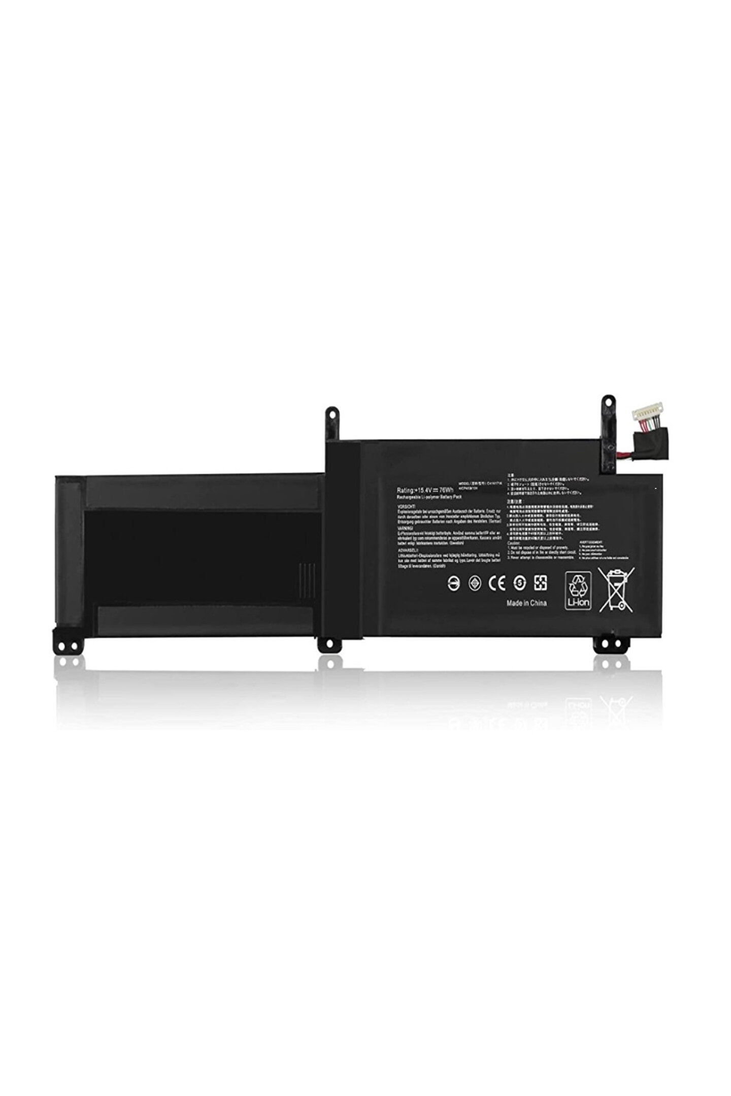 Durumu Uyumlu Ürün Hücreler (Cells) Li-polymer - 4 Cell Voltaj (V) 15.4 Kapasite (mAh) (+- %10) 4940 Güç (Wh) 76 Renk Siyah Ağırlık (g) 299 Ebatlar (mm) 285 x 97 x 10