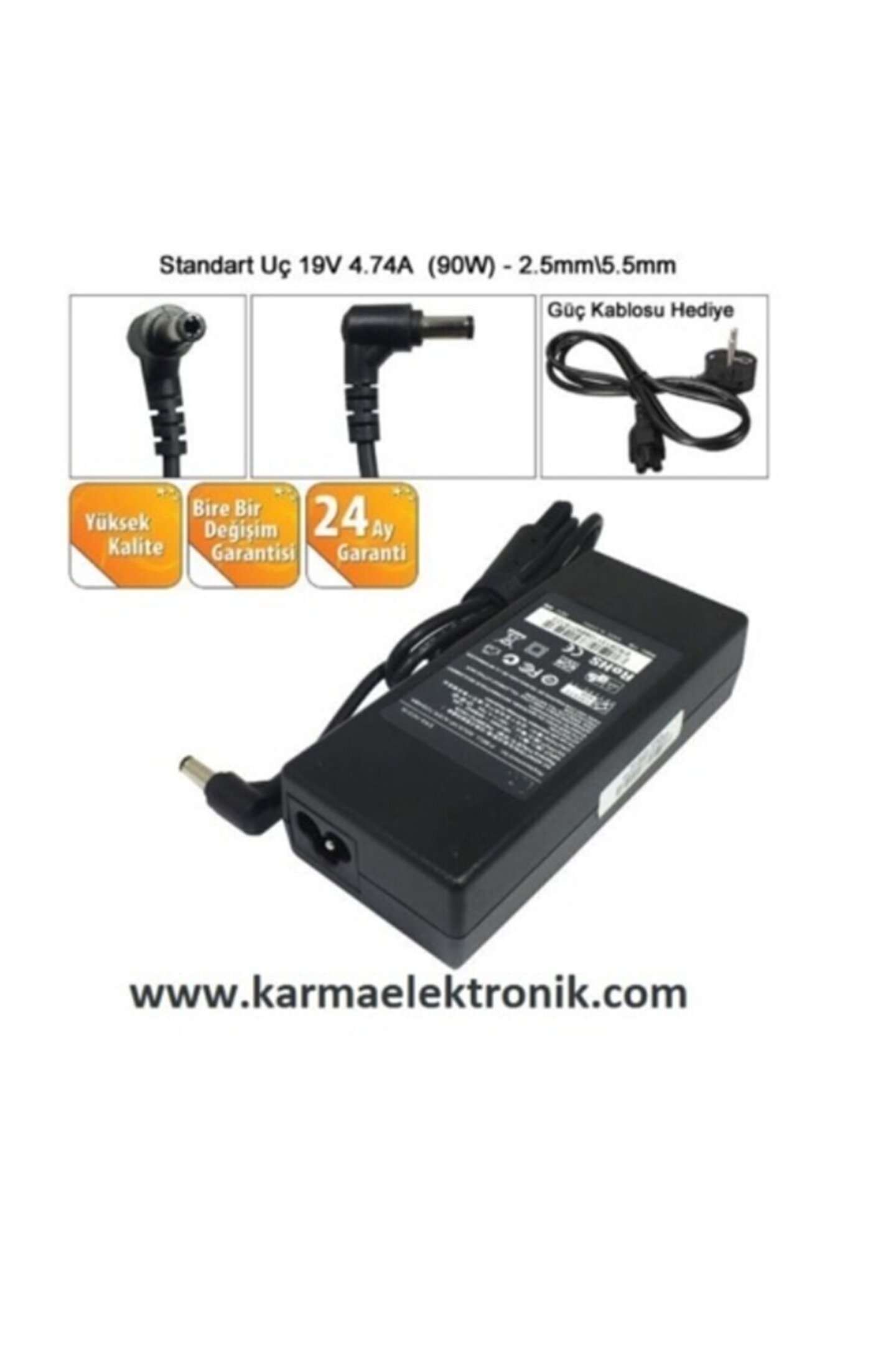 19V 4.74A (90W) Notebook Adaptör – 5.5*2.5mm Muadil 2 yıl Garanti