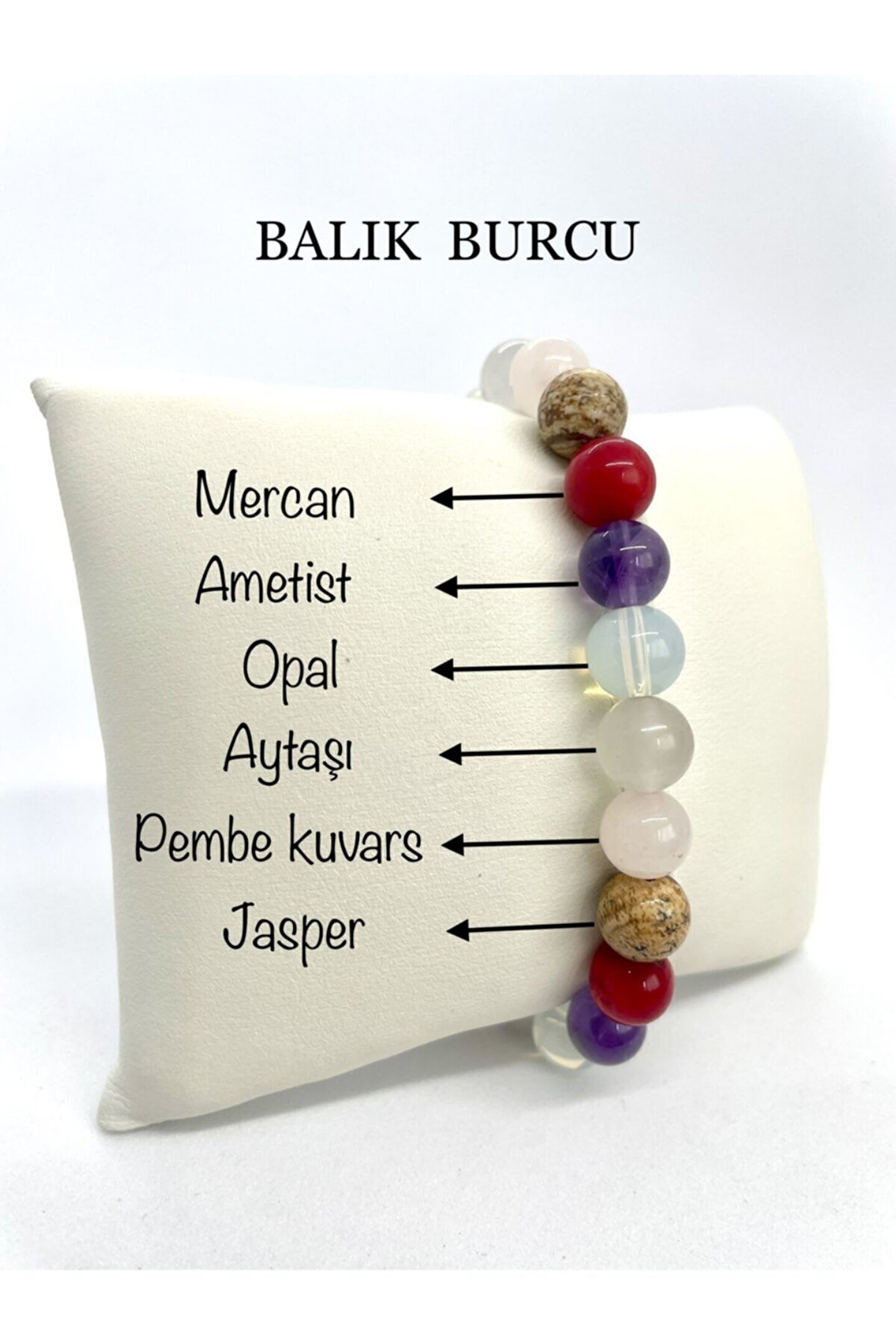 - Doğal taş kullanımı sayesinde her bir bileklik, benzersiz ve otantik bir görünüm sunar; - Balık burcu bileklik, astrolojik özellikleriyle de dikkat çeker ve burcunuzun enerjisini yansıtır; - El yapımı olması, her bir bilekliğin eşsiz ve kişisel bir dokunuşla tasarlandığını gösterir; - Doğal taşların renk ve desen çeşitliliği, her zevke uygun seçenekler sunar;