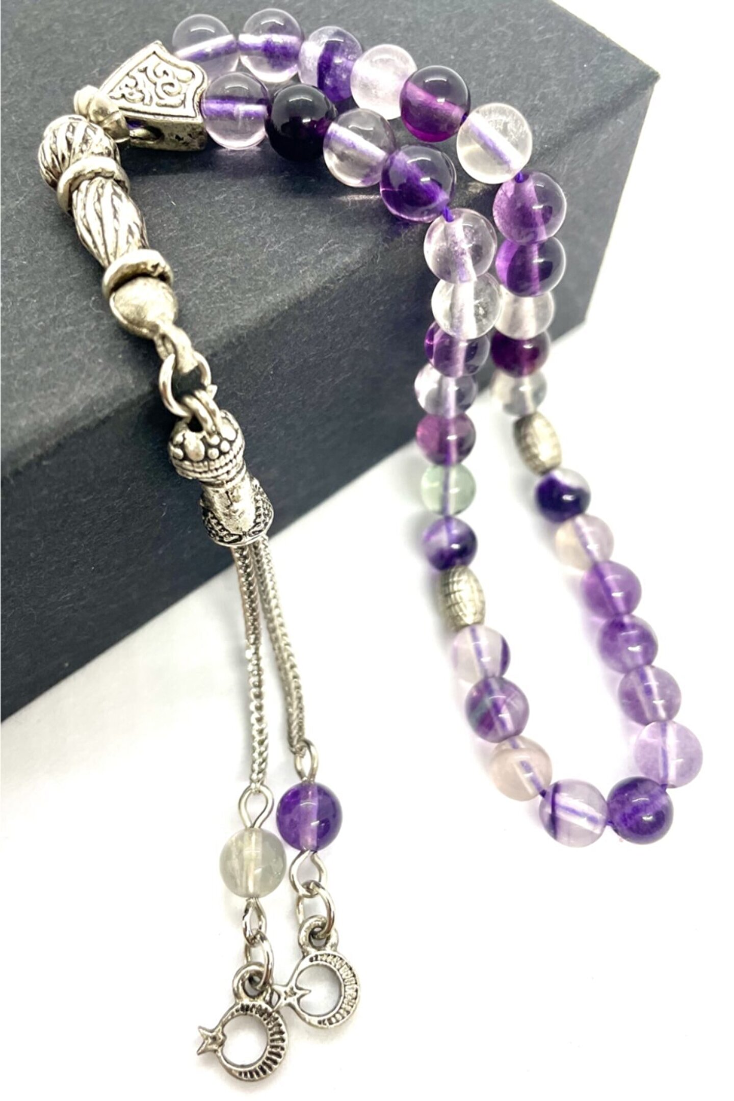 - Doğal taş kullanımı sayesinde her tesbih, benzersiz ve otantik bir görünüm sunar; - Renkli deseniyle göz alıcı bir estetik sergiler ve manevi anlarınıza renk katar; - Mini boy tasarımı, taşın taşınabilirliğini artırarak her zaman yanınızda taşıyabilmenizi sağlar;