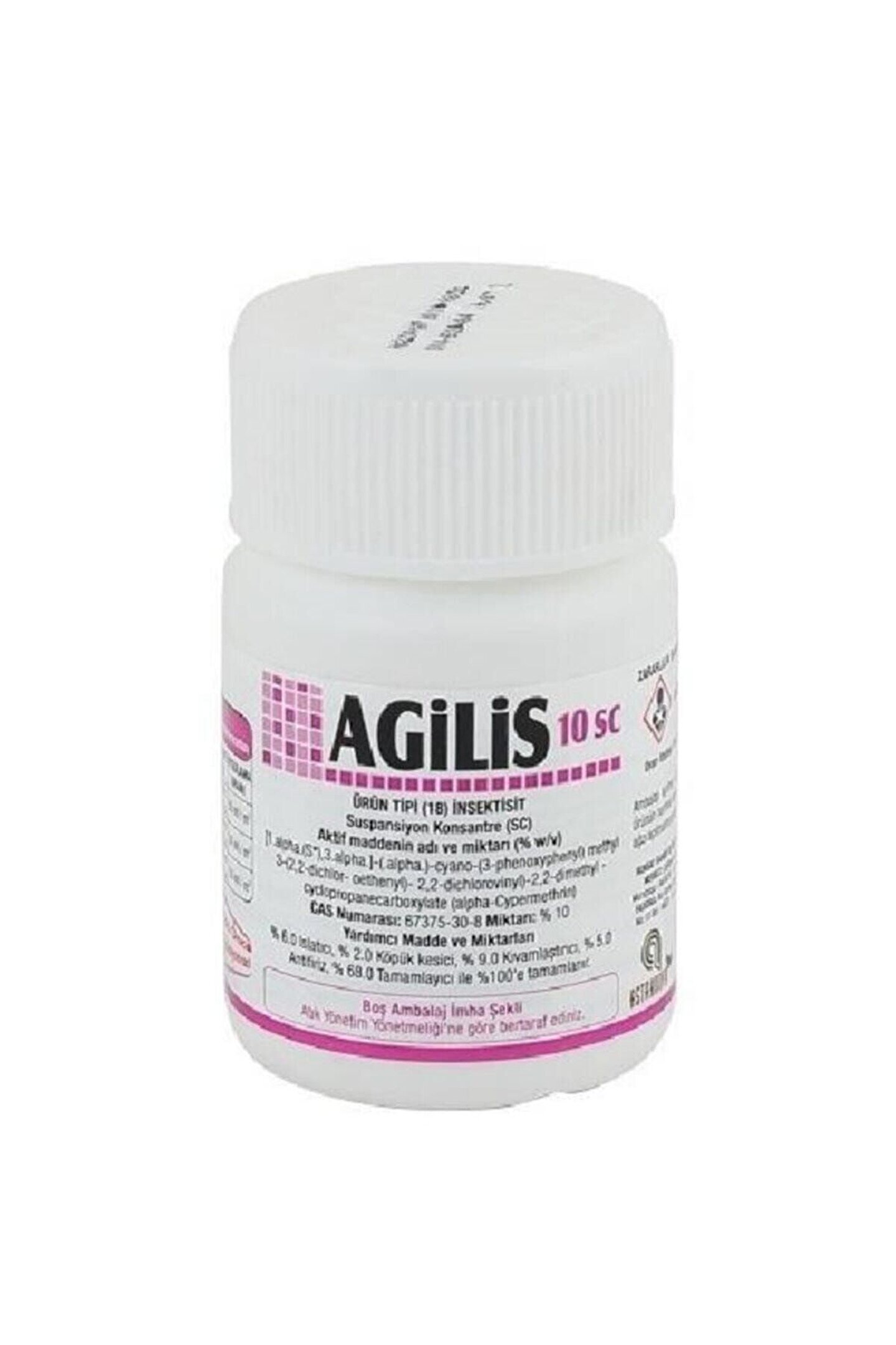 Agilis® 10 SC Ürün Grubu : İnsektisit Etkili Madde : 100 g/l Alphacypermethrin ; Formülasyon : Süspansiyon Konsantre (SC) ; Etki Şekli : Kontakt ve Mide ; Kullanma şekli: İlacın tamamı 5-6 litre su ile karıştırılıp m2 ye 50ml gelecek şekilde uygulanmalıdır.; ; Hazırlanmış olan karışım Sivrisinek , Karasinek ve Hamamböceklerinin bulundukları ve saklandıkları yerlere yakın mesafeden (40 cm kadar ) püskürtülür.; ; Sivrisinek , Karasinek ve Hamamböceklerinin bulunduğu ve çıkabilecekleri satıhlara, odaların karanlık köşelerine, dolapların arkalarına, duvarların çatlakları ve yarıklarına, süpürgeliklere, lavabo giderlerinin bulunduğu yerlere ,boş kapalı ambarlara, buzdolabı, soğutucu kabin ile boruların arkalarına uygulayınız.; ; Tüm duvarlara kaplama şeklinde de uygulayabilirsiniz.; İlacın etkisi 1-3 aya kadar devam eder.; Duvarlarda leke ve koku yapmaz.; ; Güvenlik tedbirlerine uyunuz.; ;