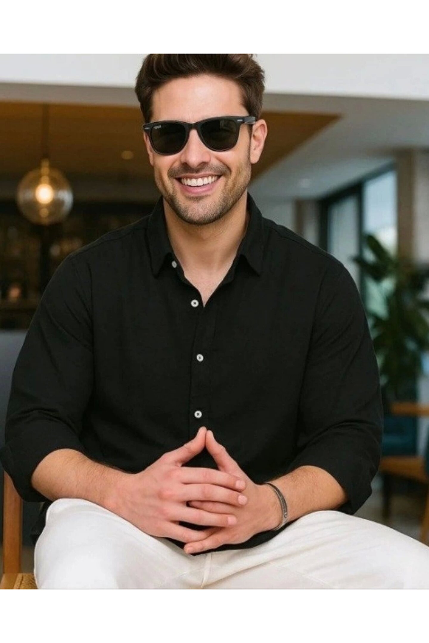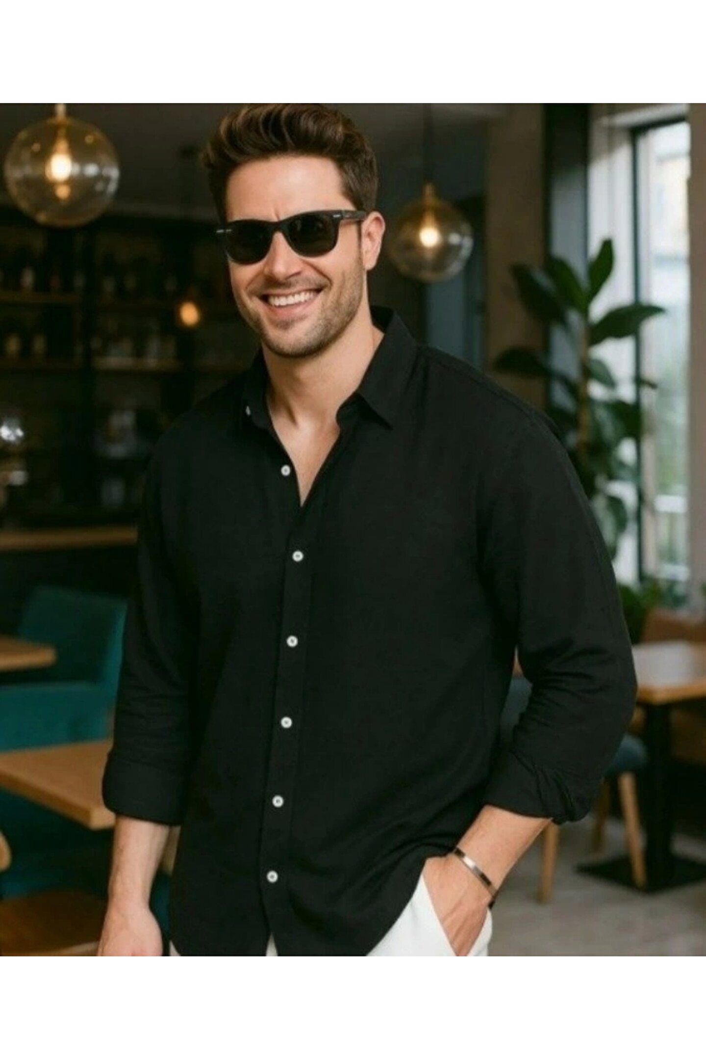AhEs Shopping Erkek Uzun Kollu Regular Sofya Keten Gömlek