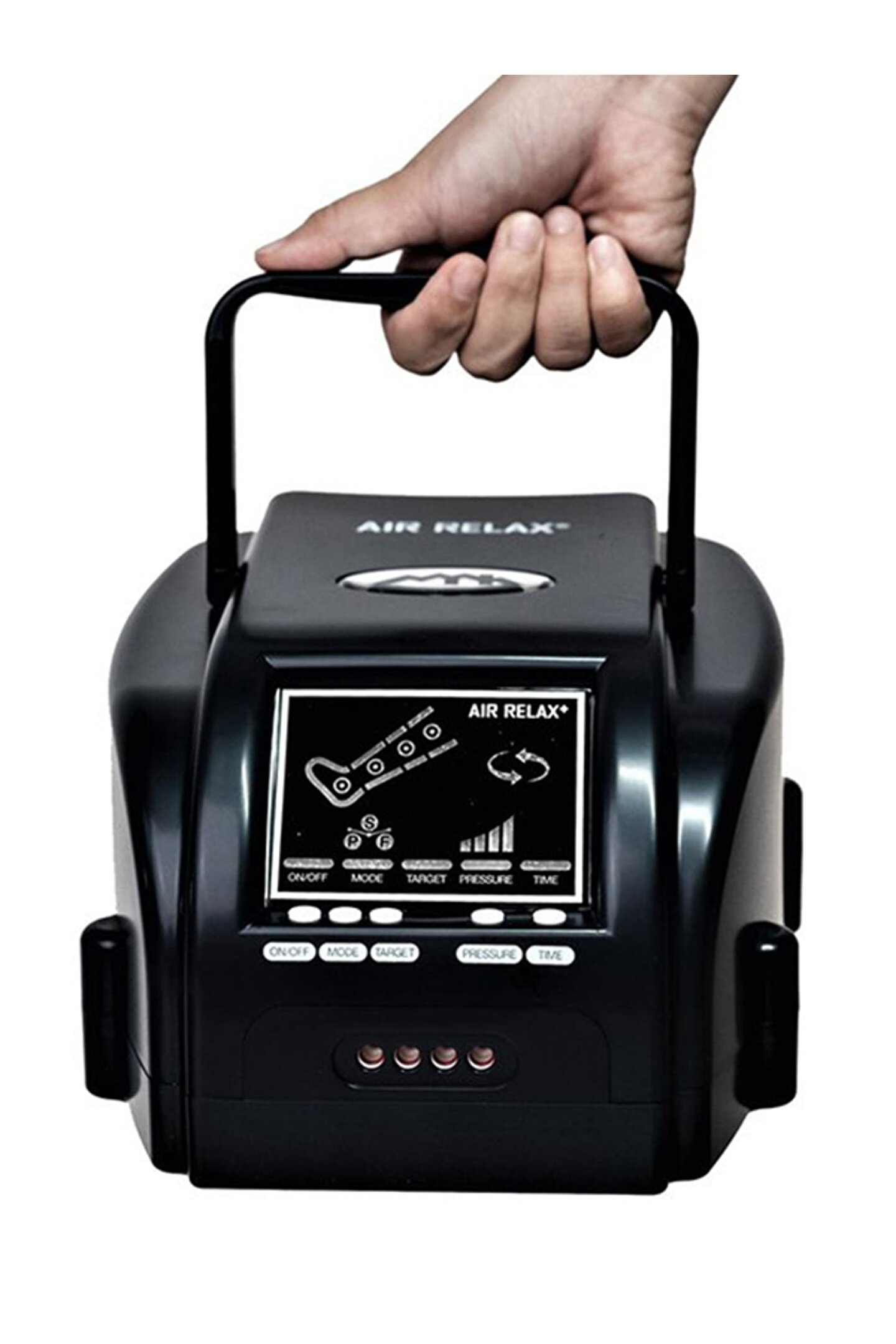 Air Relax Plus Sistemi şunları içerir - AR-3.0 kontrol ünitesi, bir çift bacak manşonu, AC güç kaynağı ve kullanım kılavuzu.