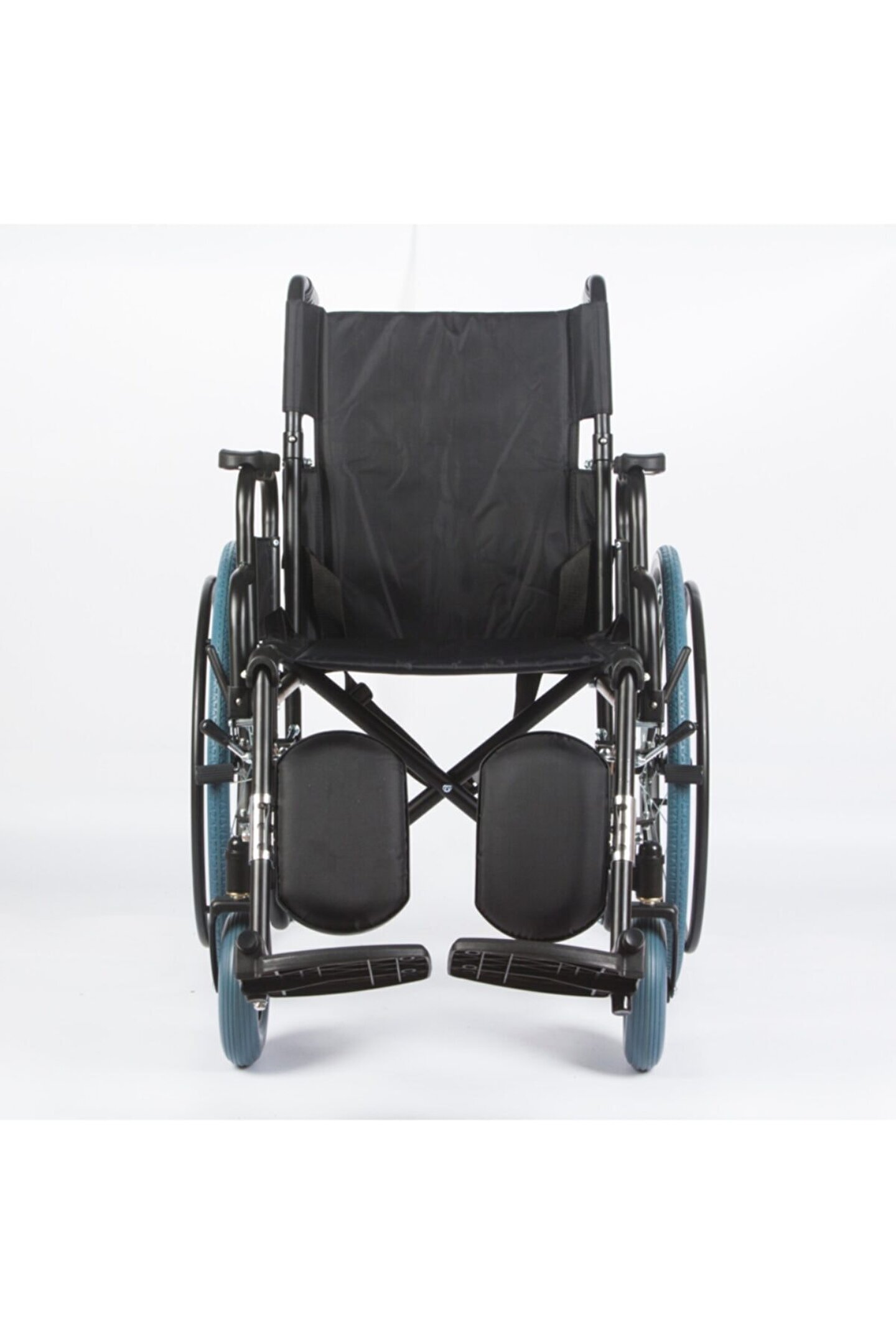 ÜRÜN ÖZELLİKLERİ · Tamamı çelik gövde ve çelik şaseden üretilmiştir. · Kolayca katlanabilir manüel tekerlekli sandalye · refakatçi kullanımına uygunluk · Çıkarılabilir kolçaklar · Ayarlanabilir baldır destekli, açısı ayarlanabilir, tamamıyla yukarı doğru kaldırılabilir ayak asansör sistemi · Kolayca temizlenebilir deri koltuk döşemesi · Geriye düşmeyi engelleyen sistem Oturma Eni: 41 cm Oturma Derinliği: 40 cm Sırt Yüksekliği: 40 cm Sandalye Eni: 60 cm Ağırlığı: 21 kg Dizaltı Uzunluğu: 50 cm Arka Teker Çapı : 59 cm Taşıma Kapasitesi: 120 kg