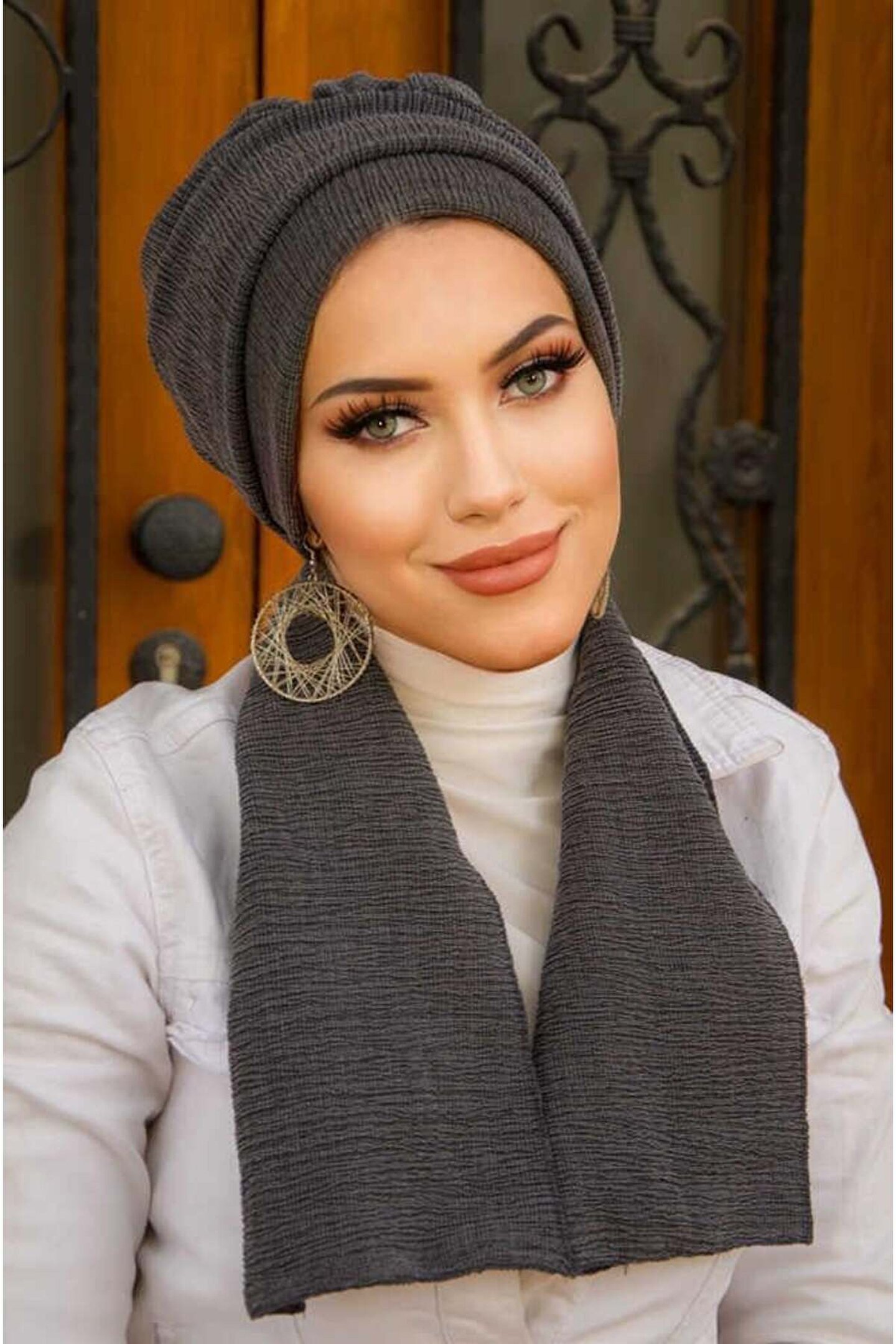 Antrasit Krınkıl Atkılı Tesettür Bone ile Hayatı Kolaylaştırır