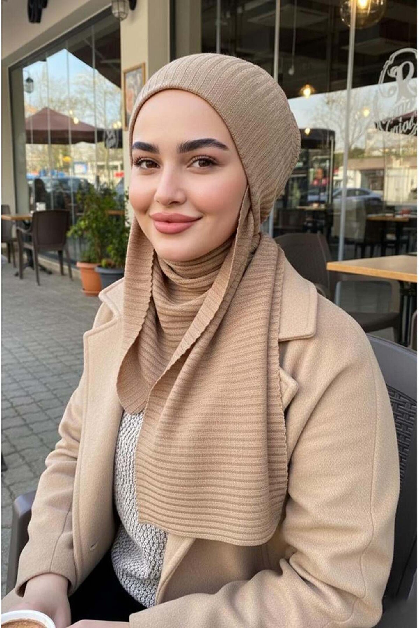 Aişe tesettür Bej Triko Kelebek Bone Şal