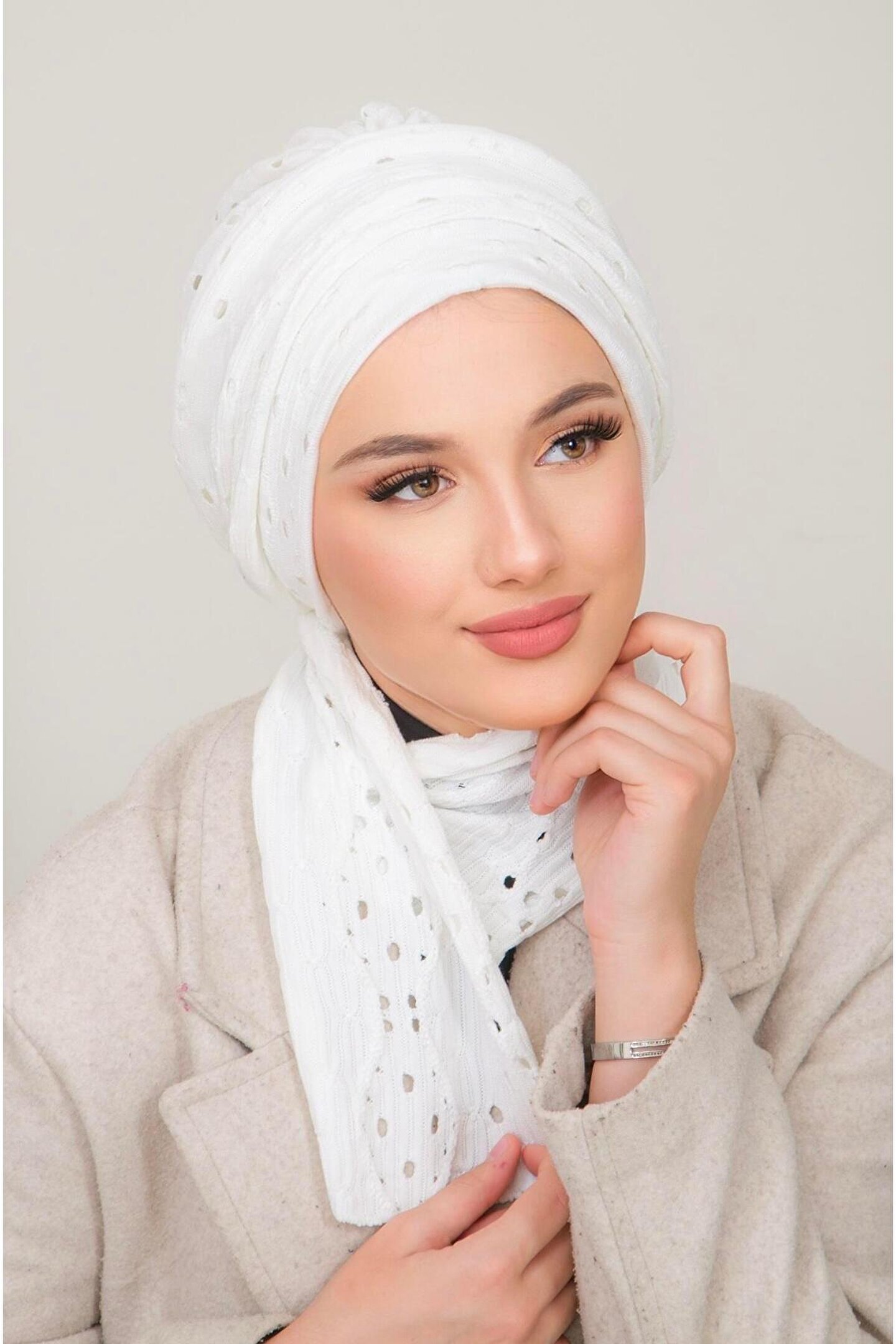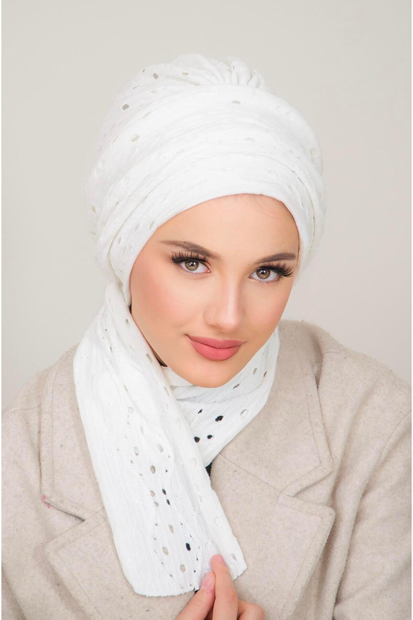 Aişe tesettür Beyaz Ajurlu Atkılı Tesettür Bone