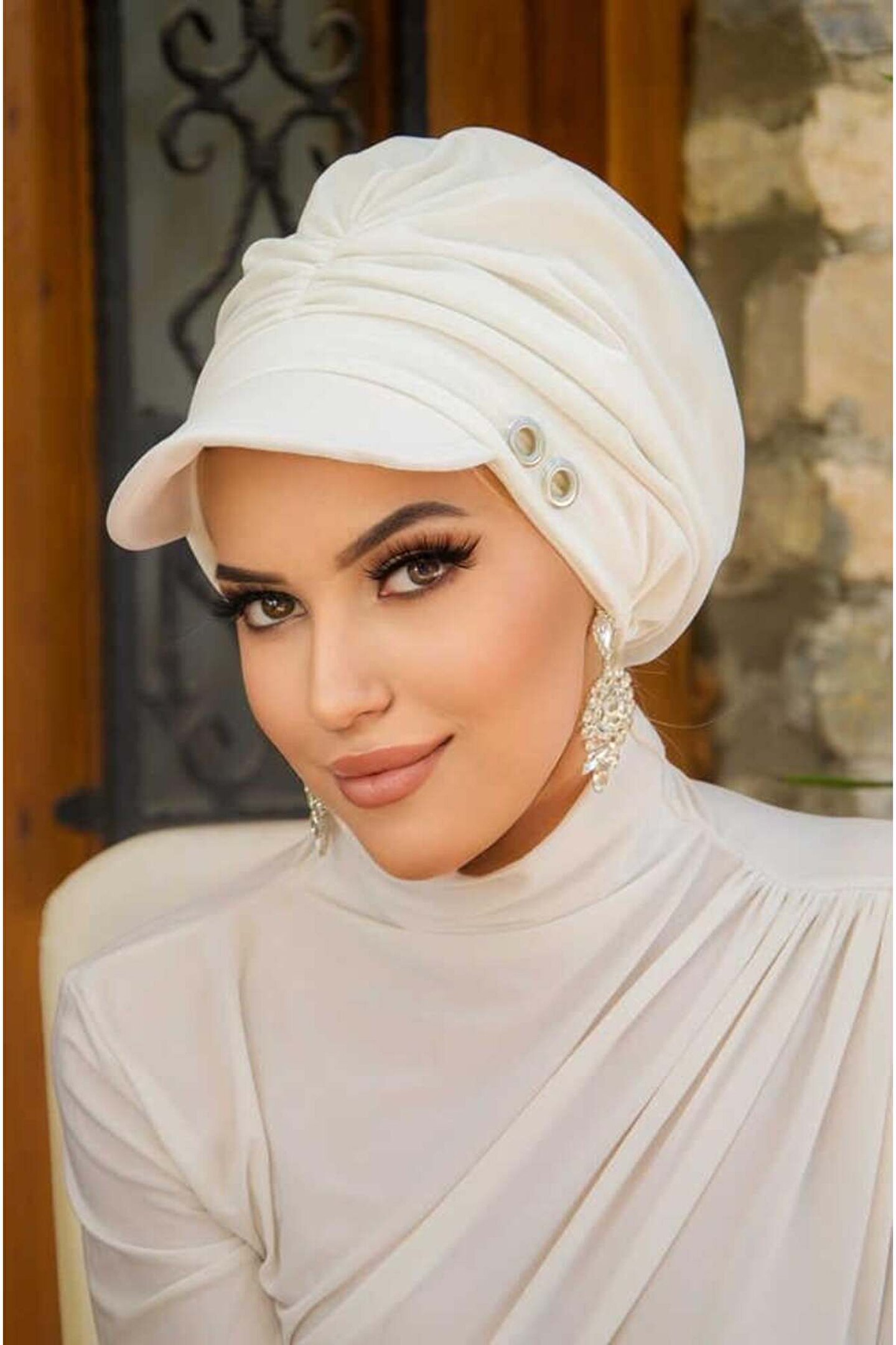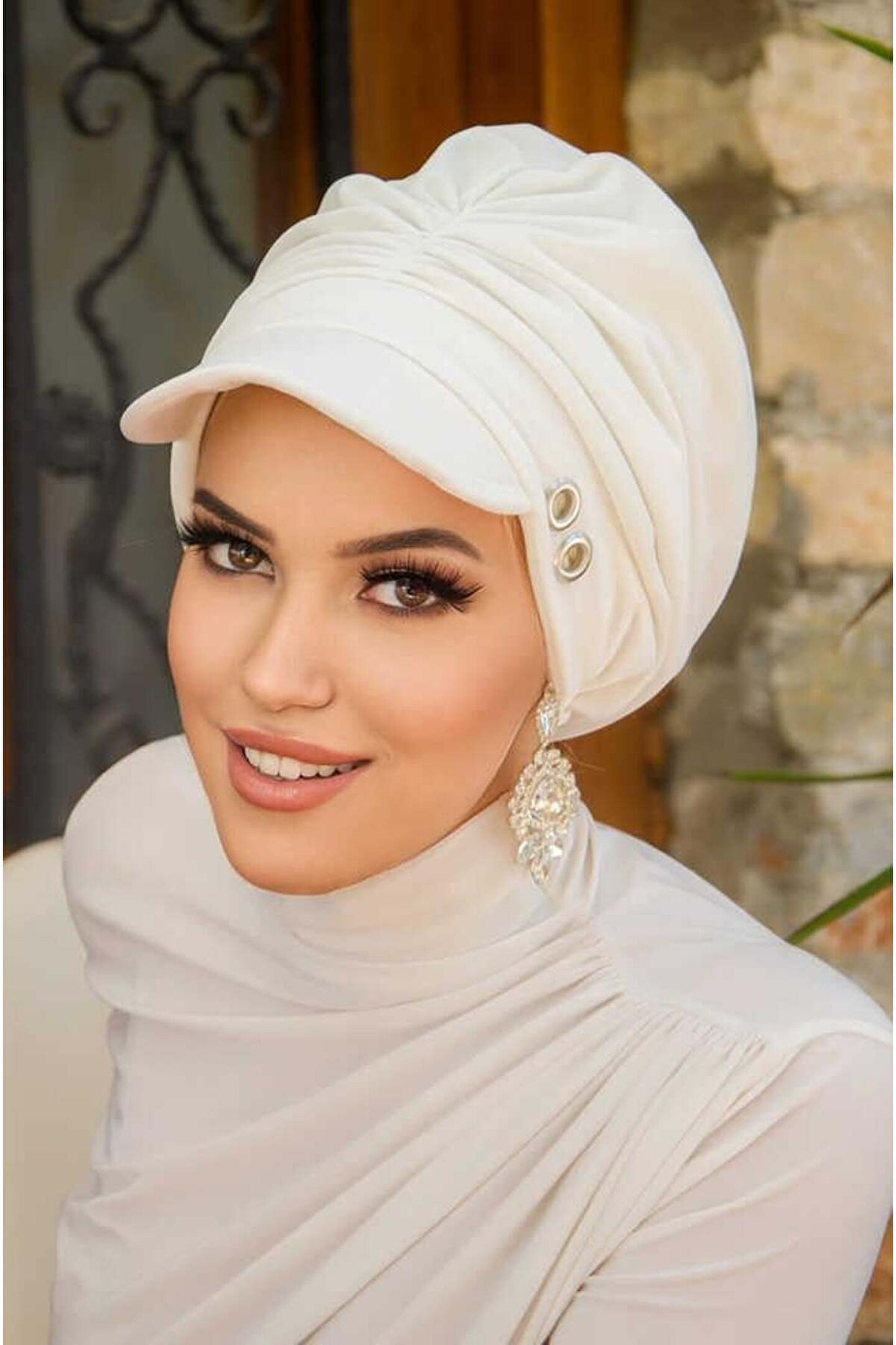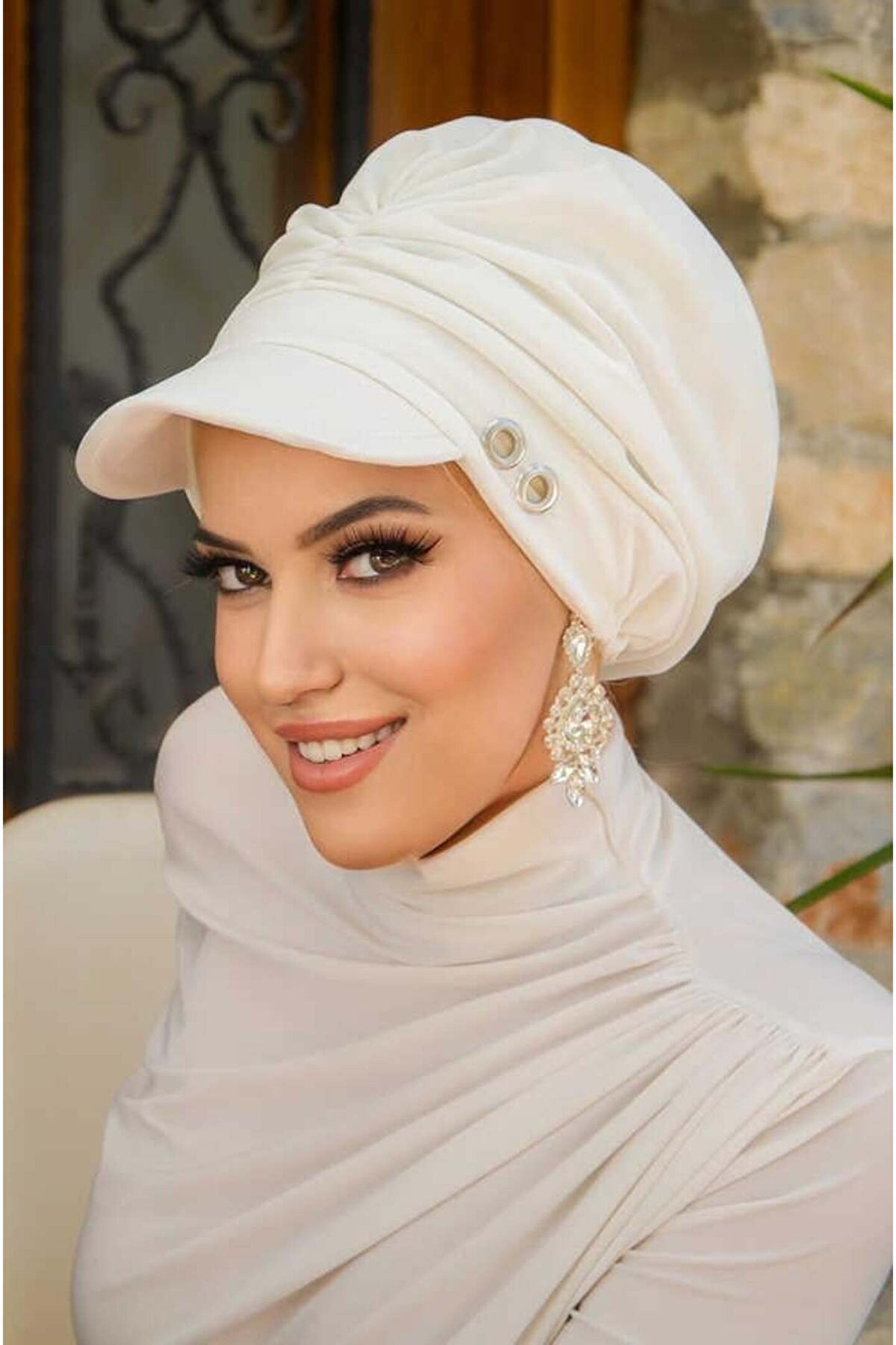 Aişe tesettür Beyaz Metal Detaylı Tesettür Şapka Bone